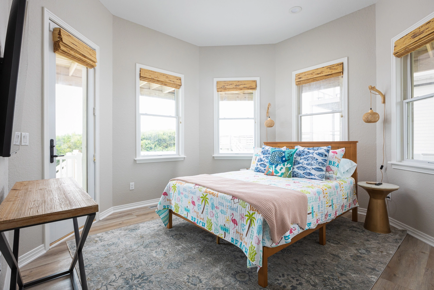 "Furniture and decor are very high quality and tasteful. Appliances are quite new~ no issues. Outfdoor area well maintained and nice furniture, gas grill and corn hole set was great. Beach chairs provided by home seemed new and quite comfortable."