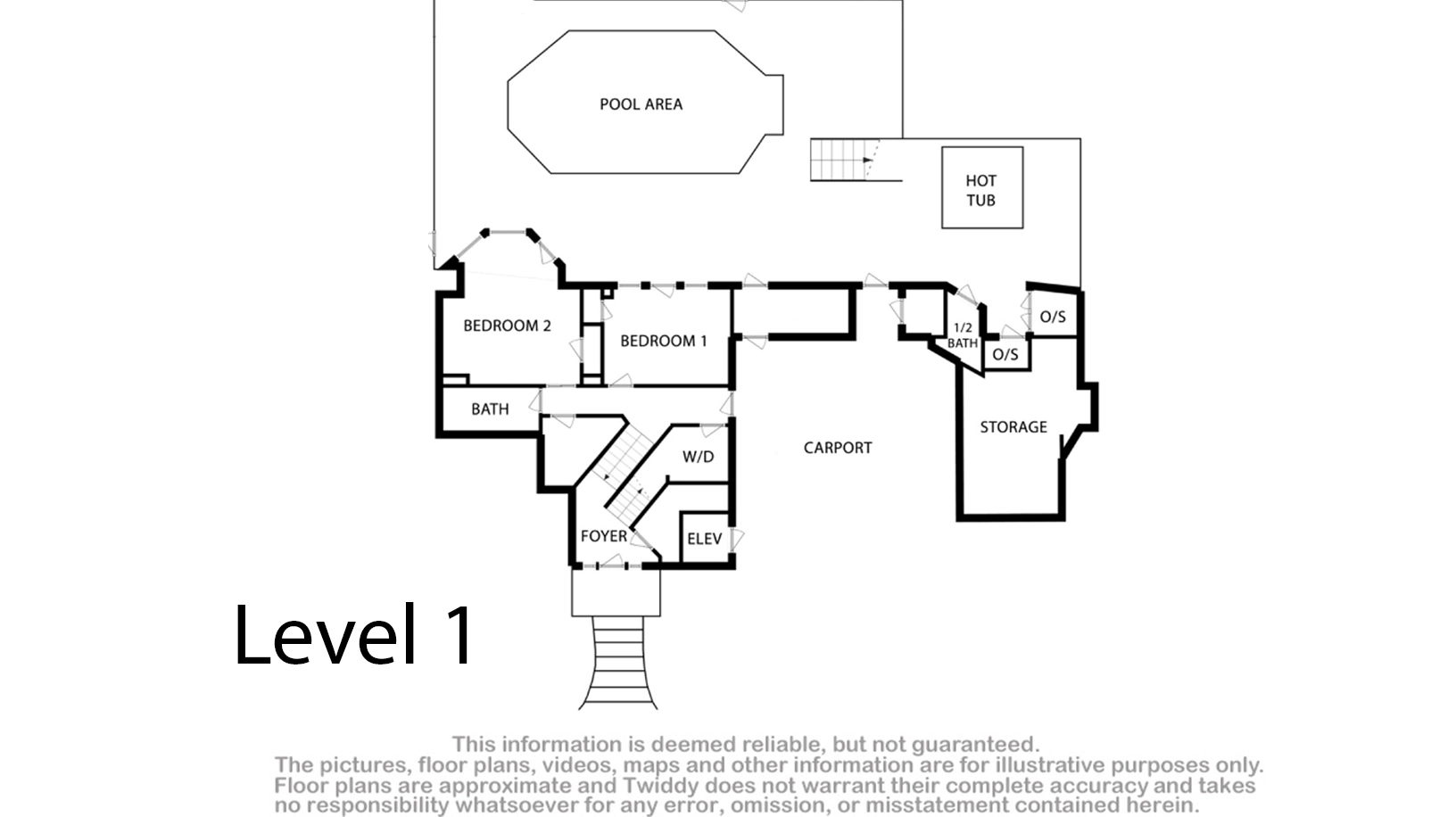 Laundry; half bath accessible from the outside only.