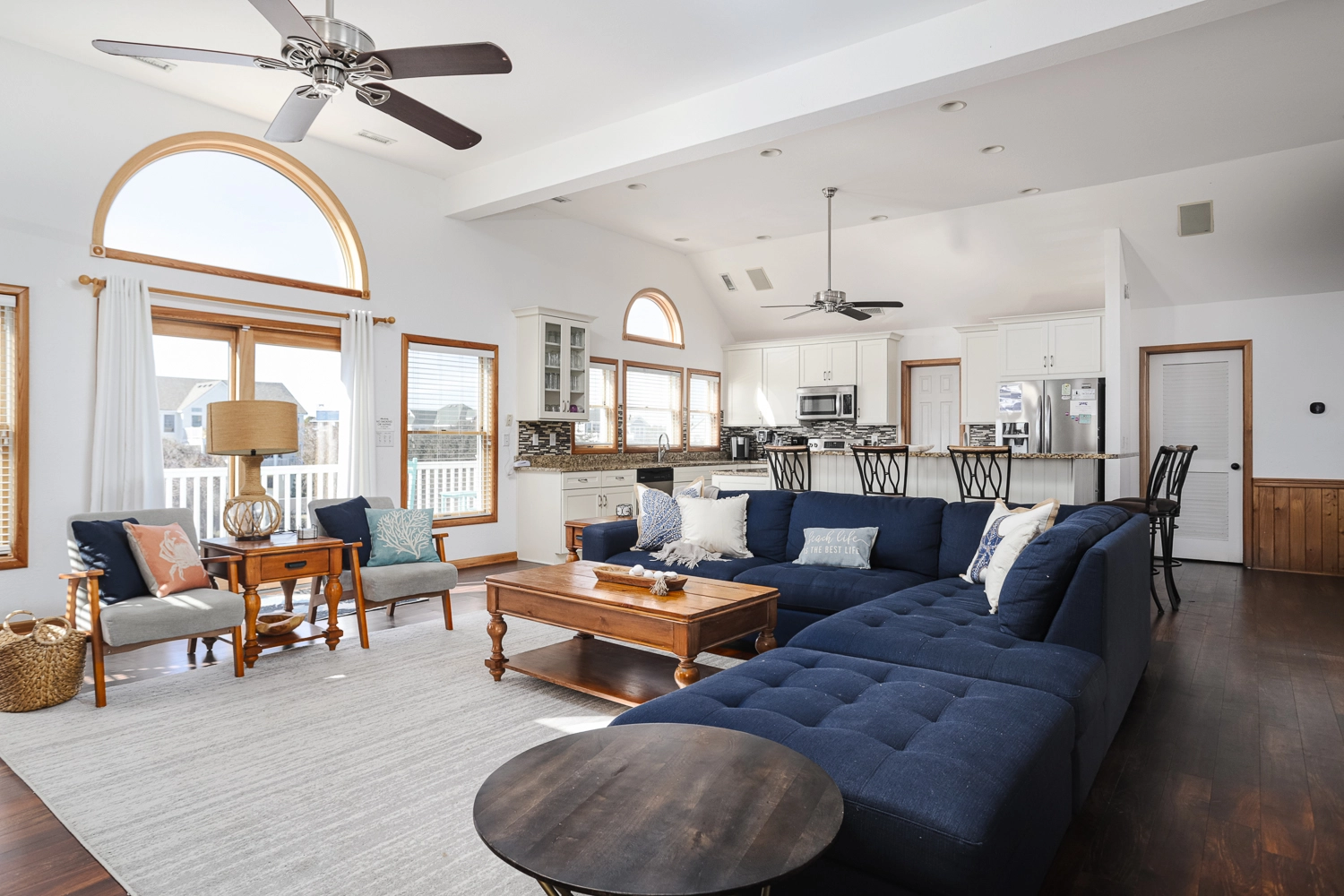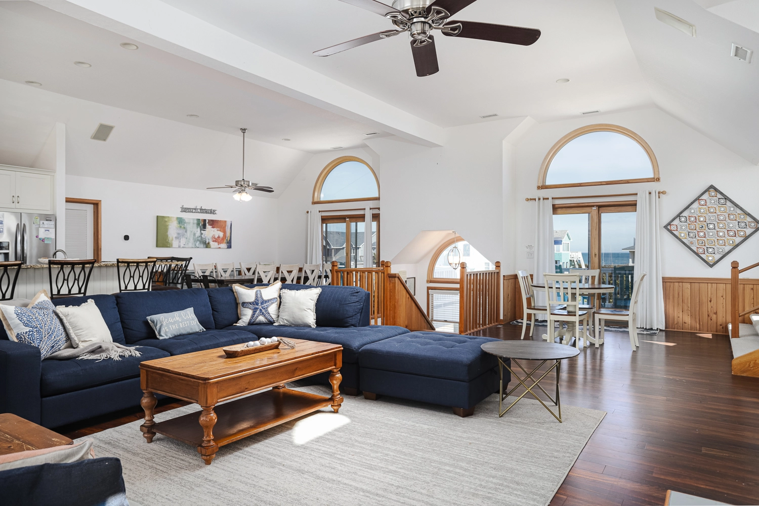 "The openness of the top floor, beautiful decks, plenty of conversation areas, personal touches and well stocked kitchen"