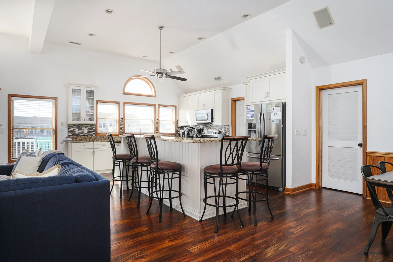 "The floor plan was great for our group- kids on 1st floor, adults on 2nd floor, and no bedrooms on top floor. I have never seen a better beach rental kitchen - lots of food storage dishes and an extensive selection of well-kept cookware."