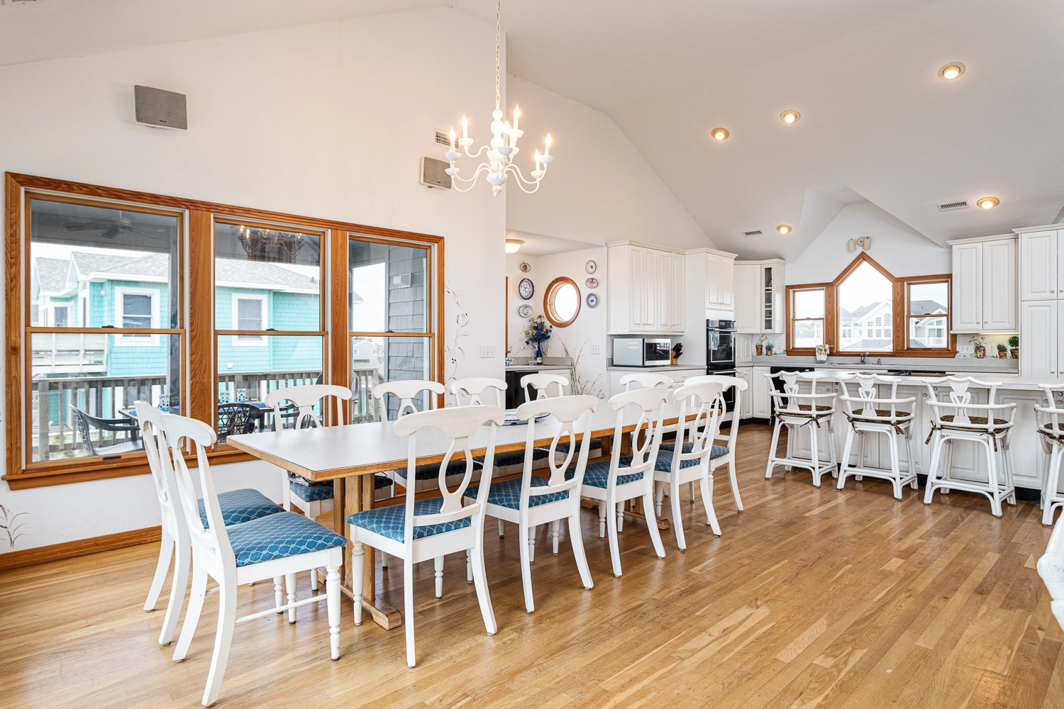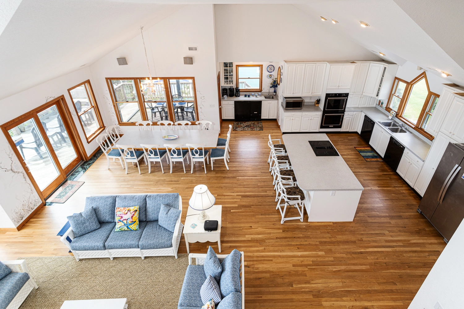 "This house was the right size for two families from VA and PA to enjoy a wonderful week together. We loved the view. Thank you for the chairs and umbrellas each day. We all enjoyed the cake again this year."