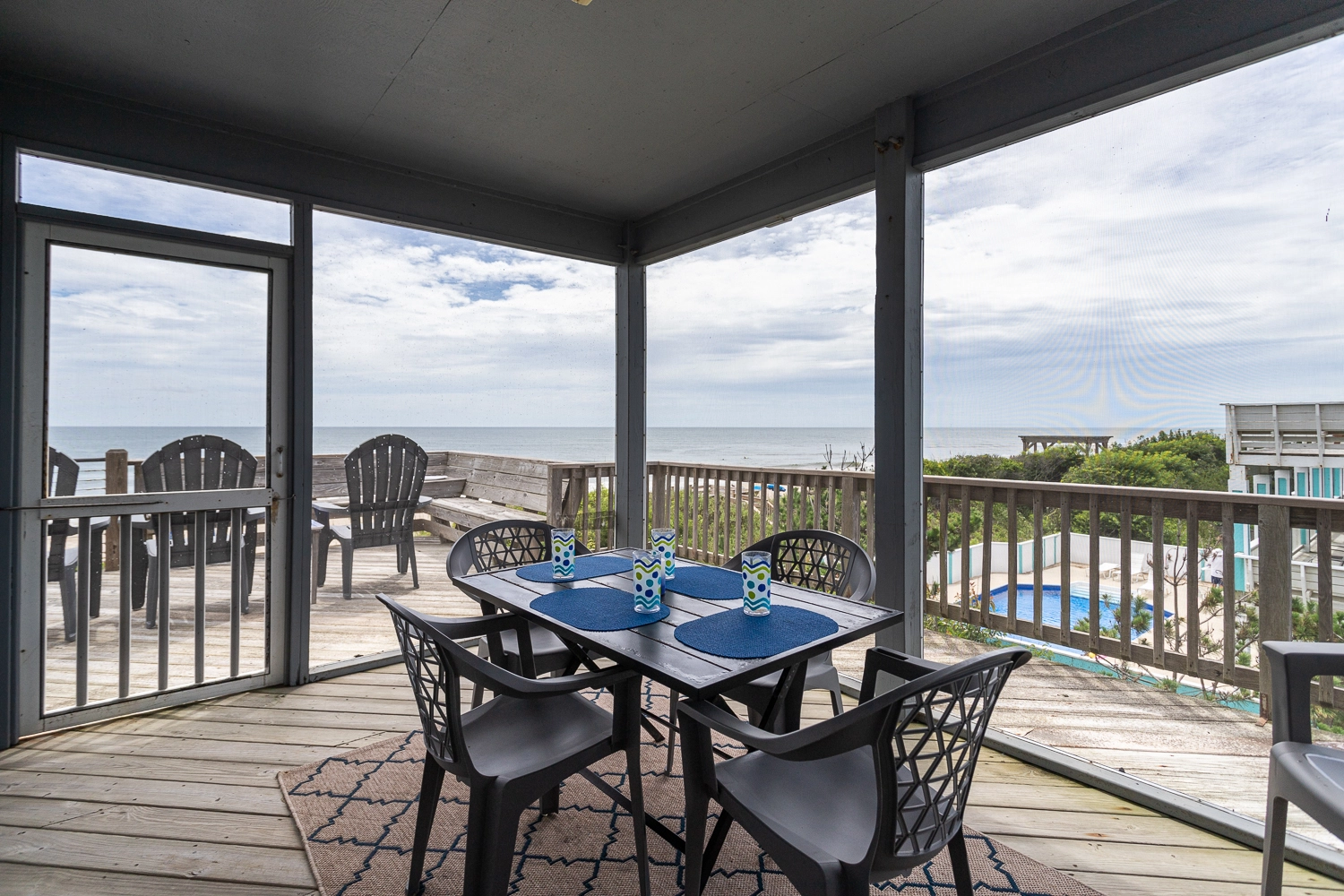 "We loved the location! Easy beachfront access and close to attractions and shopping. Common spaces were cozy, lots of parking and the screened in porch."