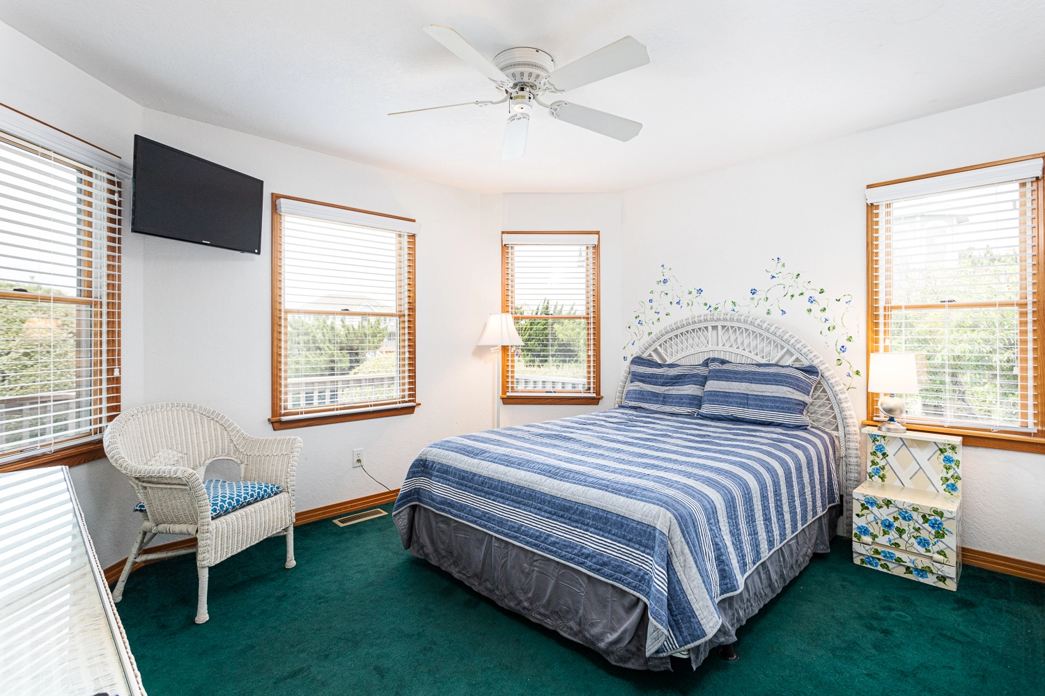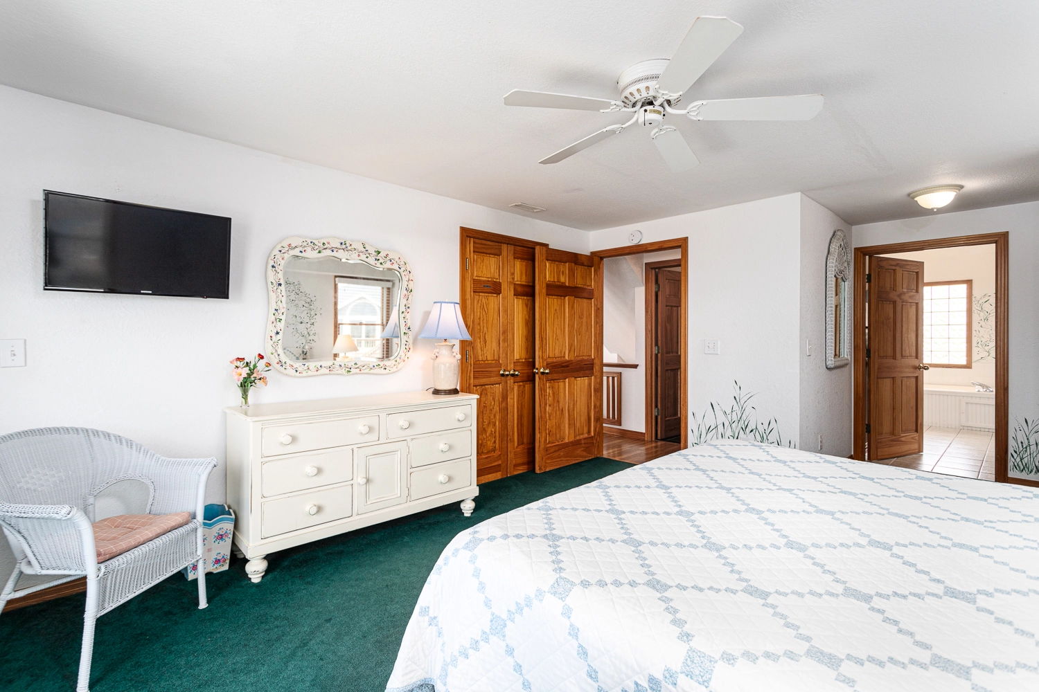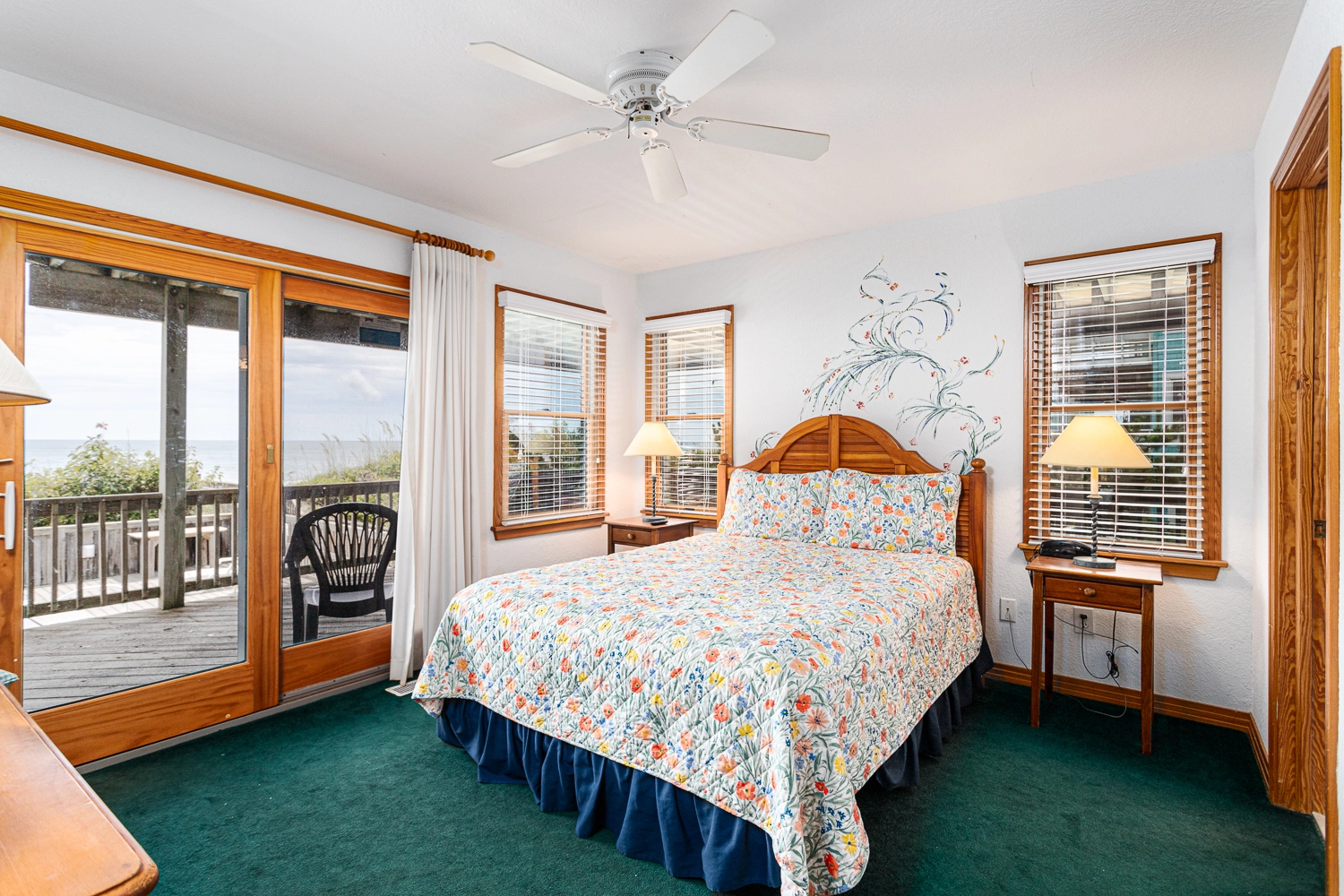 Queen, Shower/Whirlpool tub combo, Deck access
