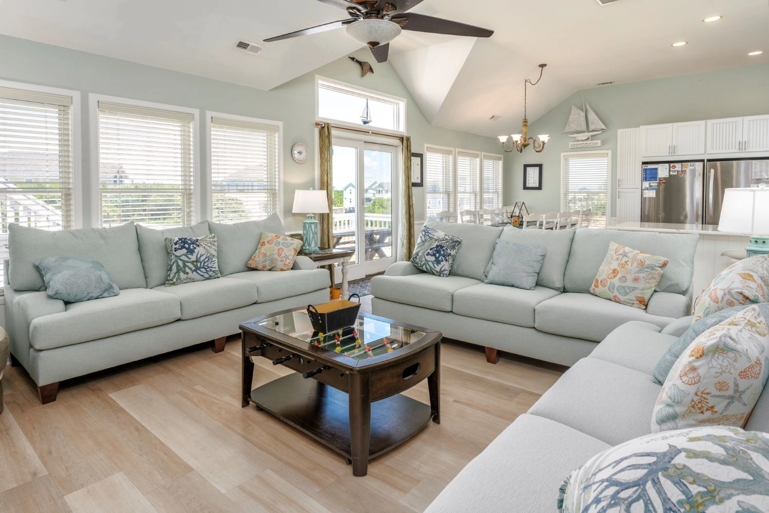 "We have rented this home several years ago and loved it. But the upgrades took it to a new level. The home accommodated our large family group very nicely. Everyone had a room and a bed. The new tiki bar was also a nice addition. For the beach goers in our group they had easy access to the boardwalk for a short walk to and from the beach. The trash service was not so great and we did alert Twiddy about the lack of roll out and missed pick up. Overall we had a great time and would rent this home again. Thank you to the new owners for making this a great place to gather with our kids and grandkids."