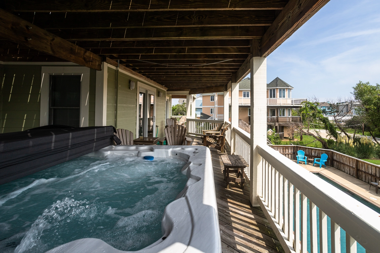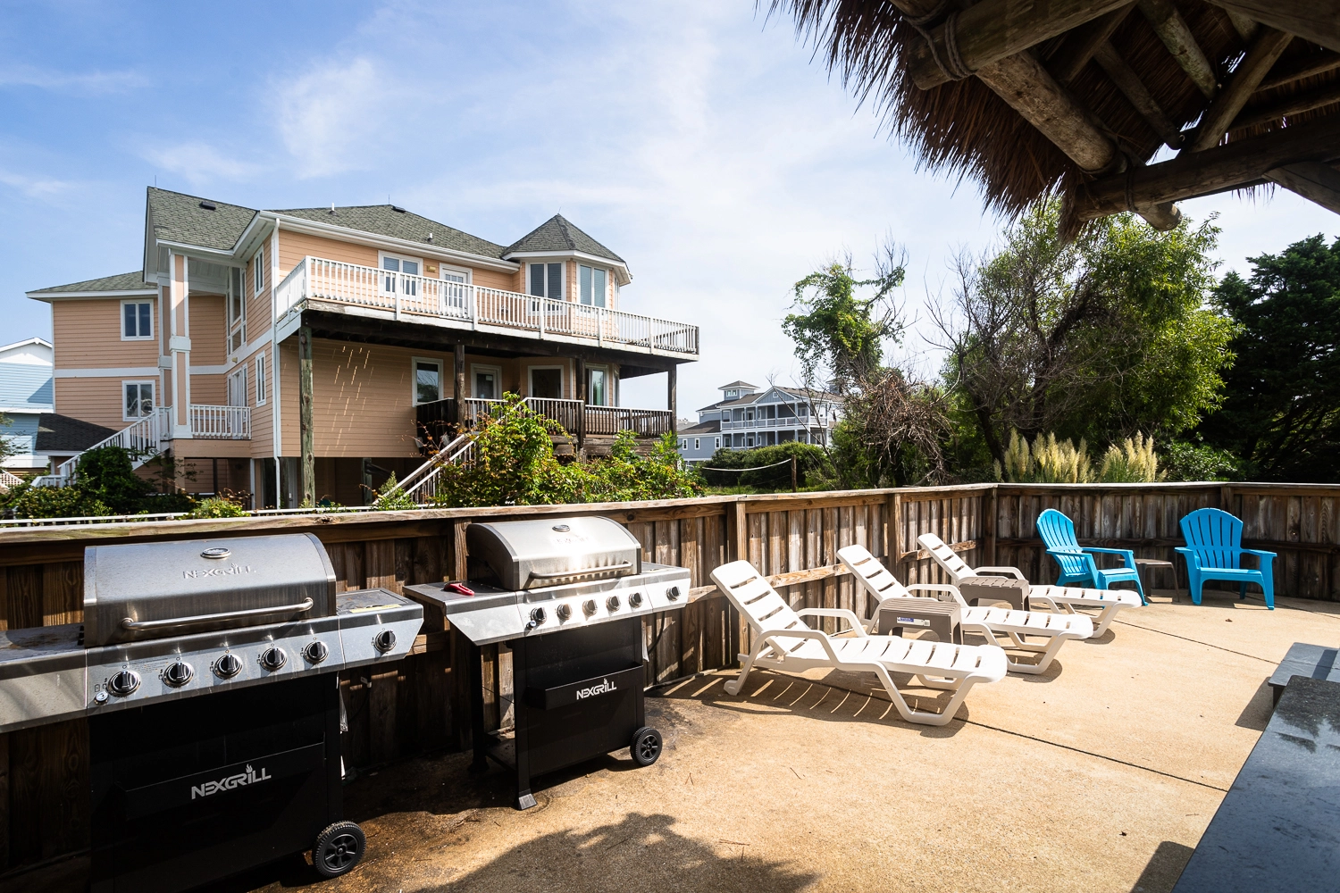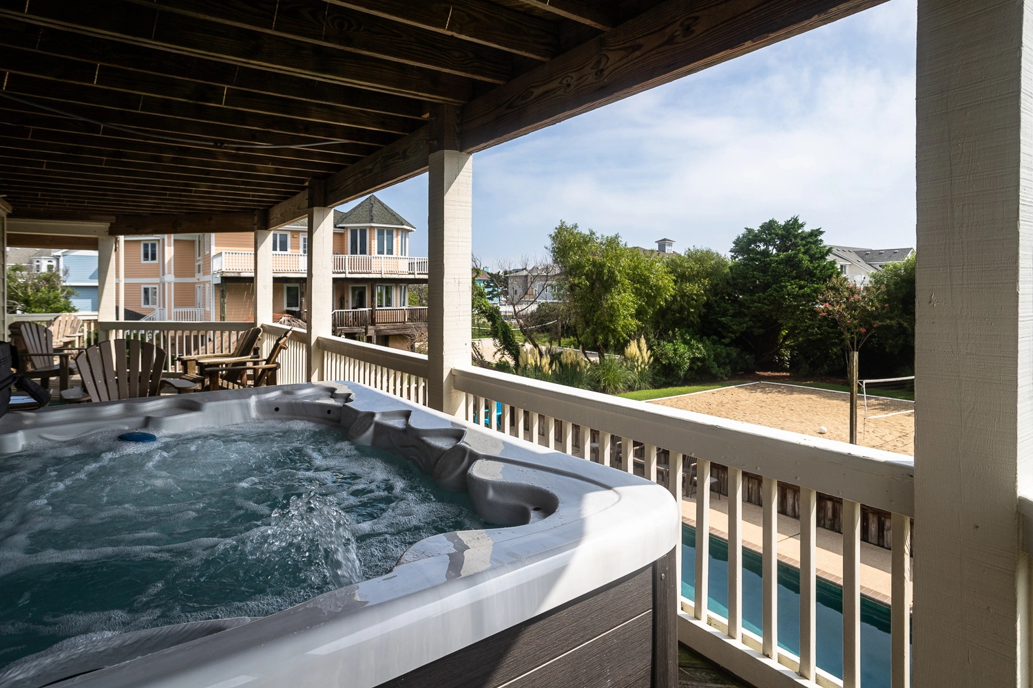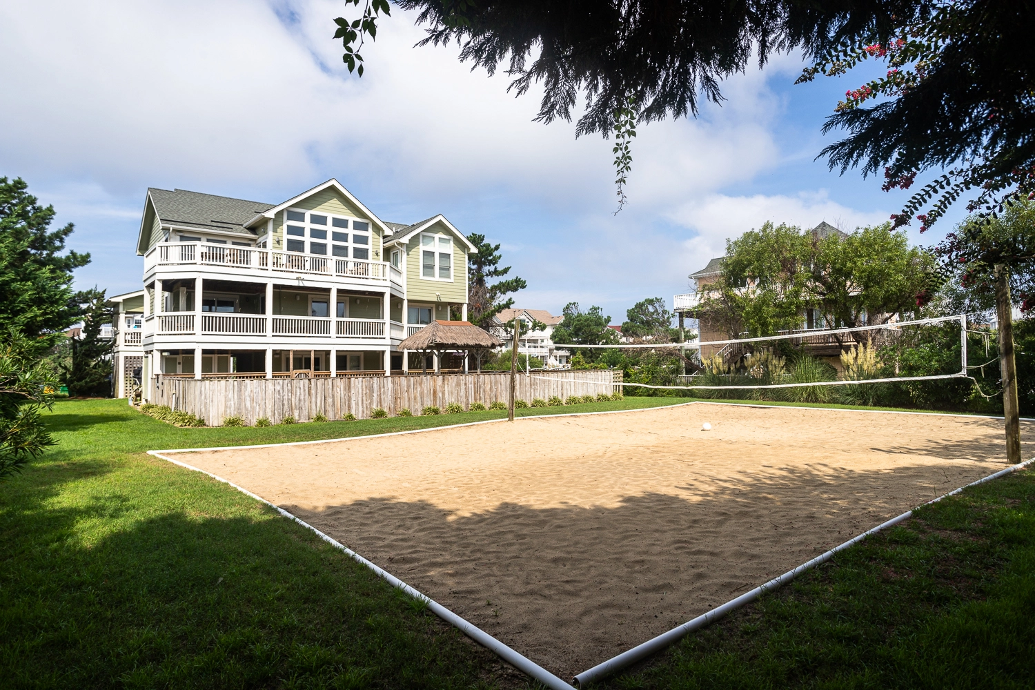 Gated private pool, hot tub, poolside tiki bar, basketball goal, volleyball set, gas grill.