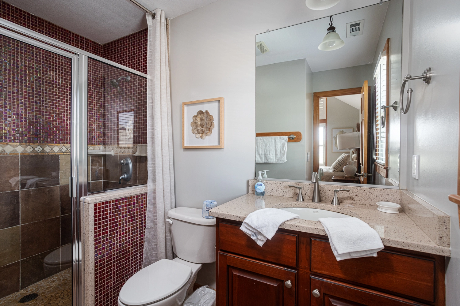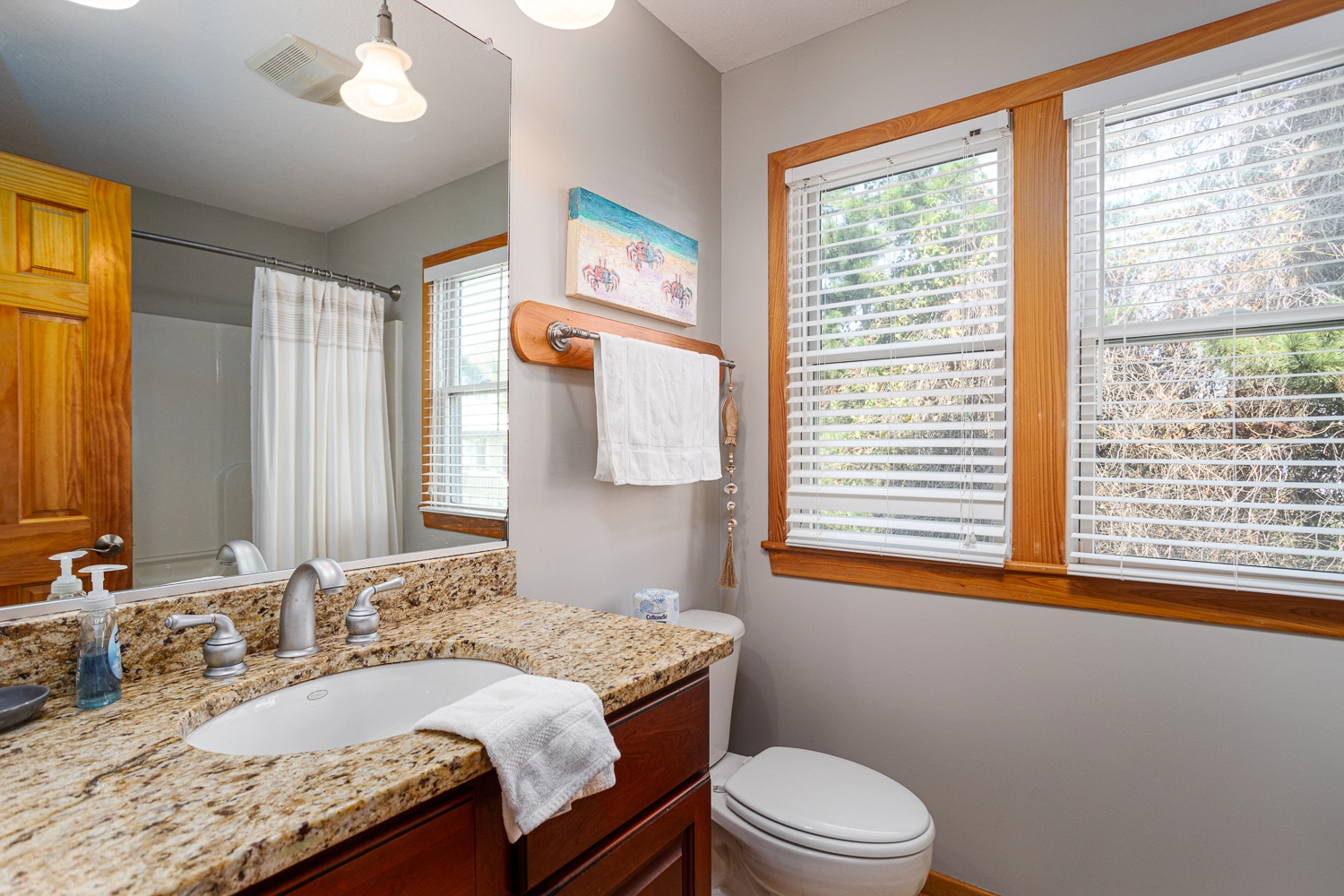 Queen, Shower/tub combo, Deck access