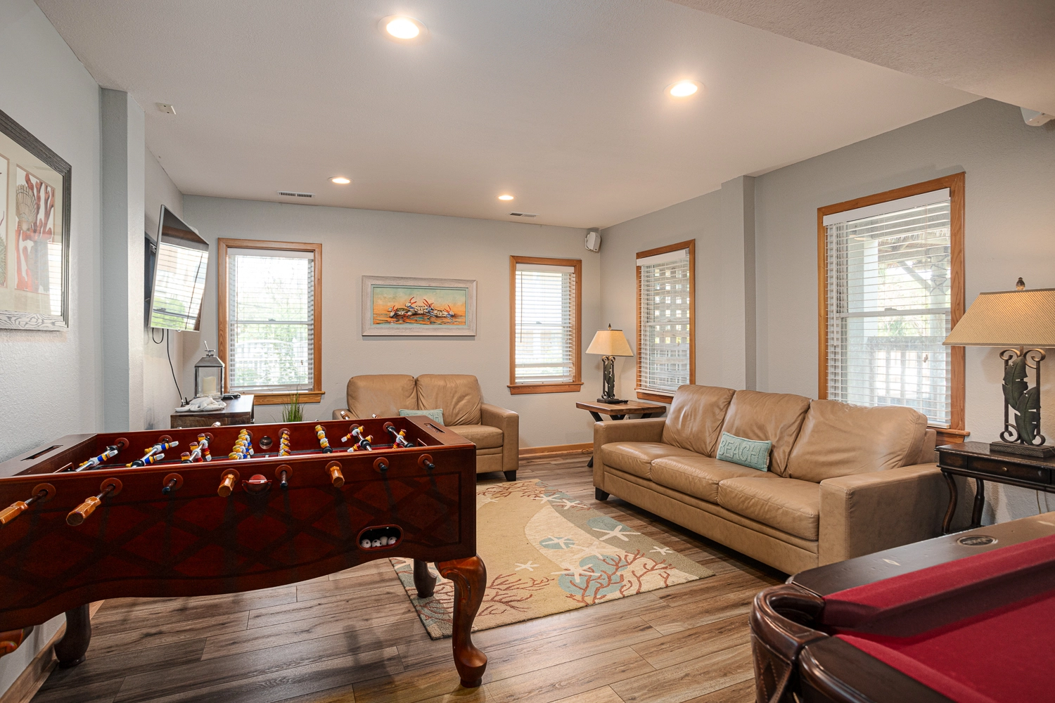 "Pool billiards football and the amount of room in the house"
