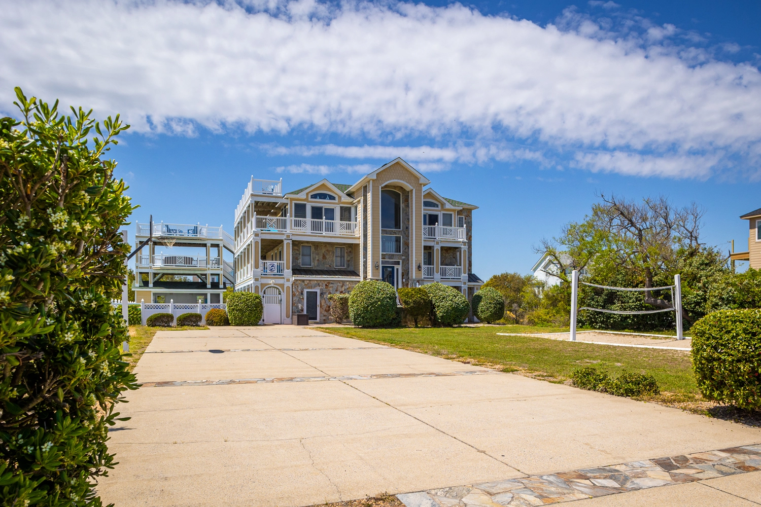 "Absolutely fantastic vacation. 4th yr to stay in this home. Location is perfect. We can see ocean well, hear it, access easily. We love biking to all the parts of Corolla from this neat and quiet neighborhood. House meets all of our needs/wants. We found it neat and mostly clean. Most beds slept good, one mattress is bad on 2nd floor. All kitchen stuff works. Stove needs replacing soon. Baths were all fairly clean and all working. Some screen doors and exterior doors are weathered and hard to move. House had no steak knives. Hammock is hung in way that makes it not usable. Nice new grill. No charcoal grill, gas only. Love all the tables upstairs for eating, games, puzzles. We love all the decks and poly wood chairs. Love the elevator, real knee saver for older people and great help for load in/out days. Extra fridge for drinks very helpful. House has great bones but there is some wear and tear/ weathering. We are counting days till our 5th year in 2022!!"