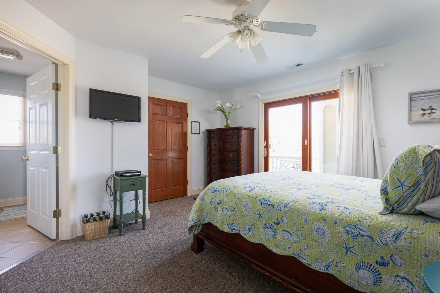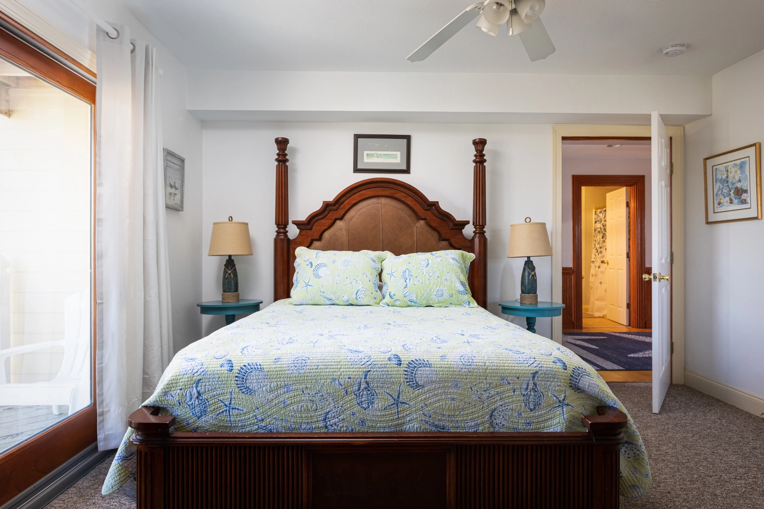 Queen, Shared bath with room 2, Shower/tub combo, Deck access