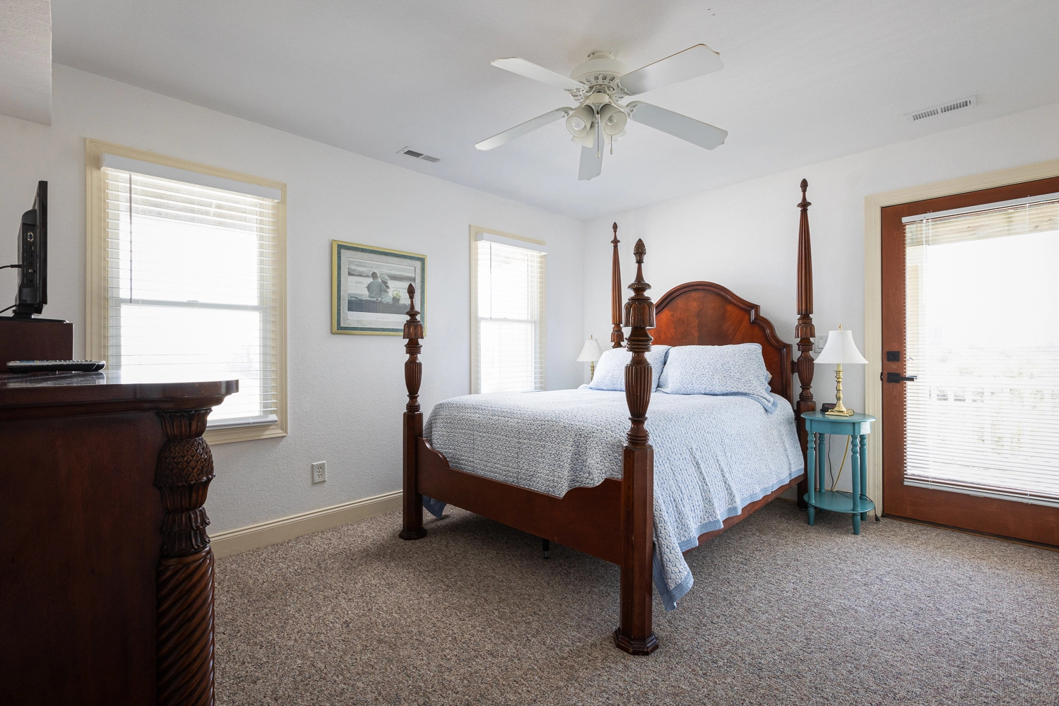 Queen, Shower/tub combo, Deck access