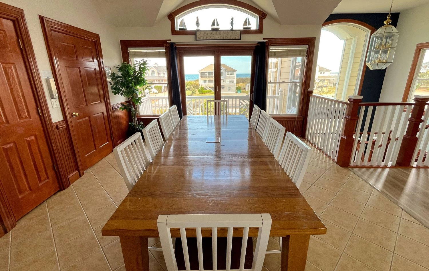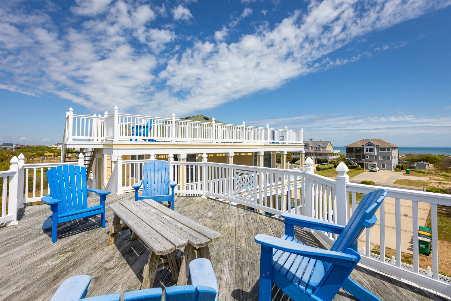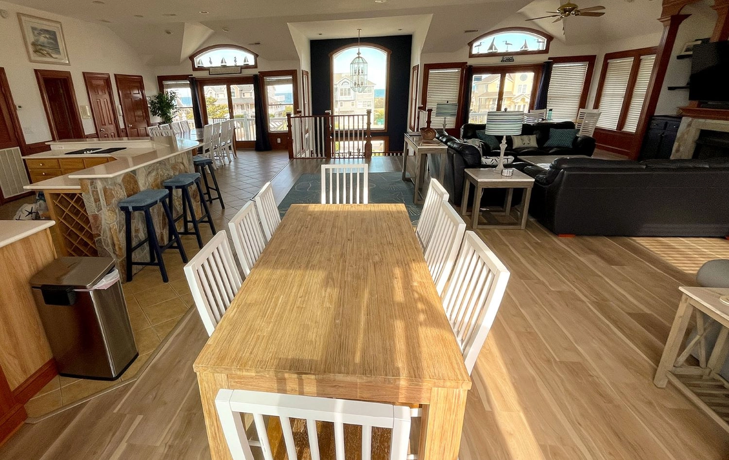 "We loved the upstairs and how big and open it was. Most beach houses have a bedroom on the upper level, we liked how this house didn’t. We also loved how large the bedrooms were and the number of bathrooms the house had. The driveway was large and fit all our trucks and cars which was also great. The house was clean and had everything we needed. We noticed the outdoor shower had low water pressure, so it wasn’t used. It also didn’t have hooks to hang towels and suits. Some of the sliding doors were a bit tricky and would get stuck (primarily the slider going out to the pool entrance). Overall, great house and great views of the beach."