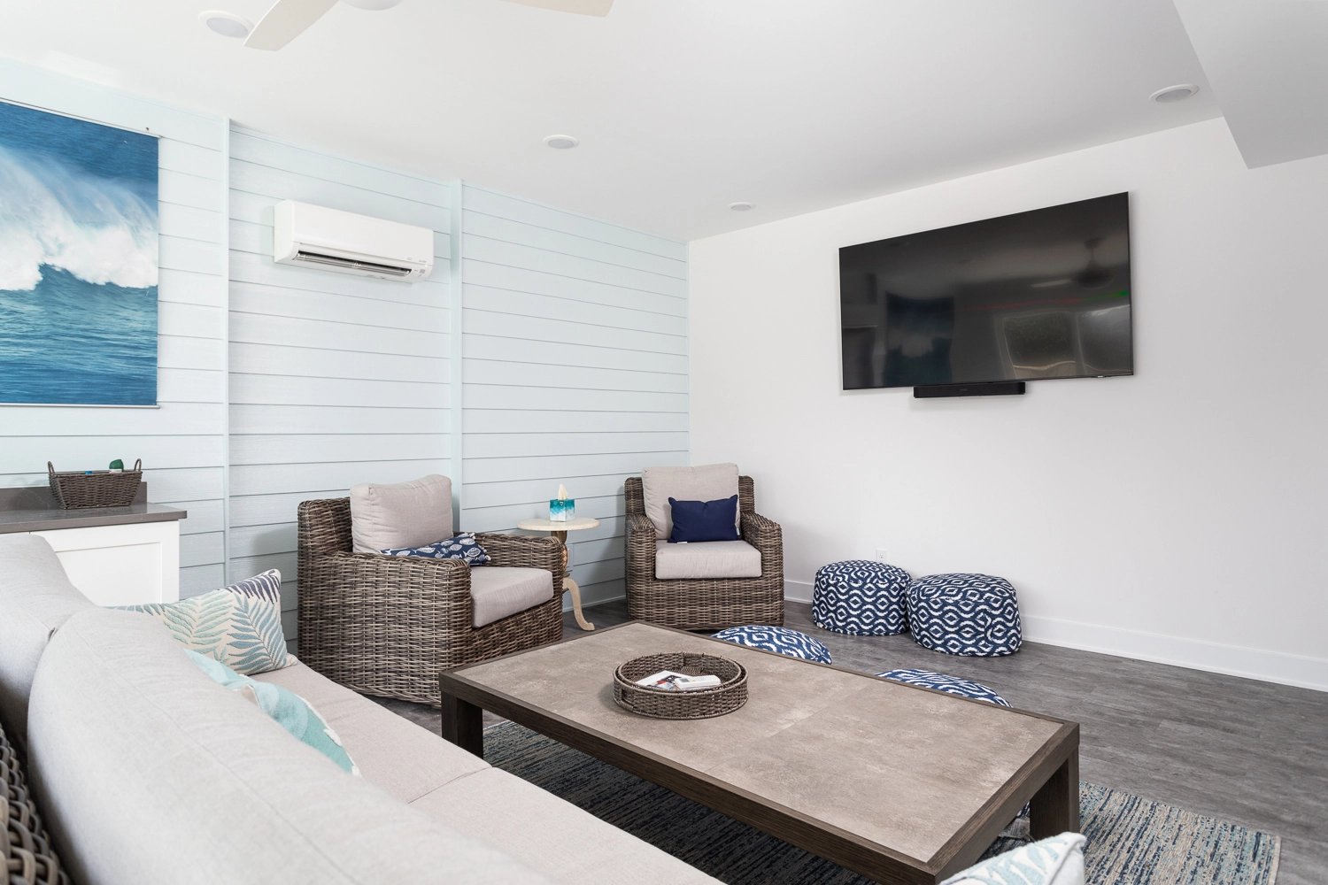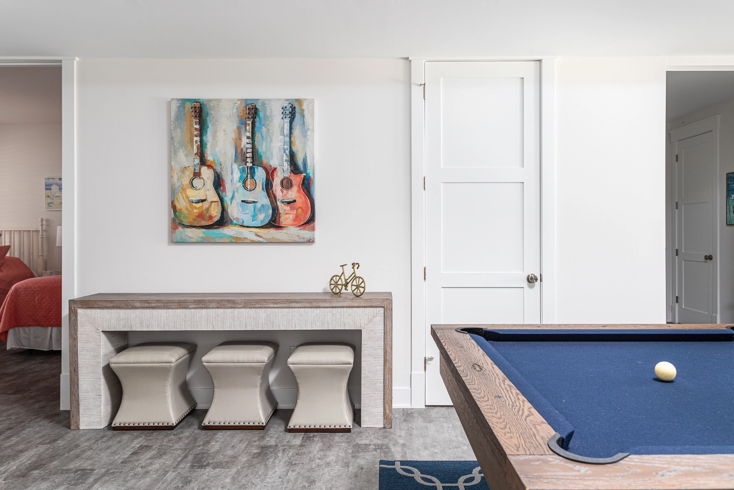 "This house was very well thought out and absolutely PERFECT for our large group. A list of the many thins we loved: - Very LARGE, open floor plan on 3rd level with great furniture. Our group had a great time eating our meals, having cocktail hours and playing our nightly games. - The kitchen was unbelievable with its restaurant grade stove and oven, 2 large refrigerators, 2 dishwashers and being incredibly well stocked! - The wraparound decks were great as well as all of the deck furniture. - Large bedrooms - all of them. - Plenty of areas to sit on each level (it was especially nice for the parents of the youngsters as they had a place to relax while making sure the little ones settled down for their naps and for the night). - The patio area was FANTASTIC! From the pool to the lounges to the sun room, whose doors opened up, made for such a great place for us to snack, drink and have a fun as one large group. - We love our music and having Sonos available to play throughout the house - or even in isolated rooms - just made for an even greater week. - Kudos to the owners for being thoughtful enough by providing wifi, Sonos, etc. instructions throughout the whole house!"