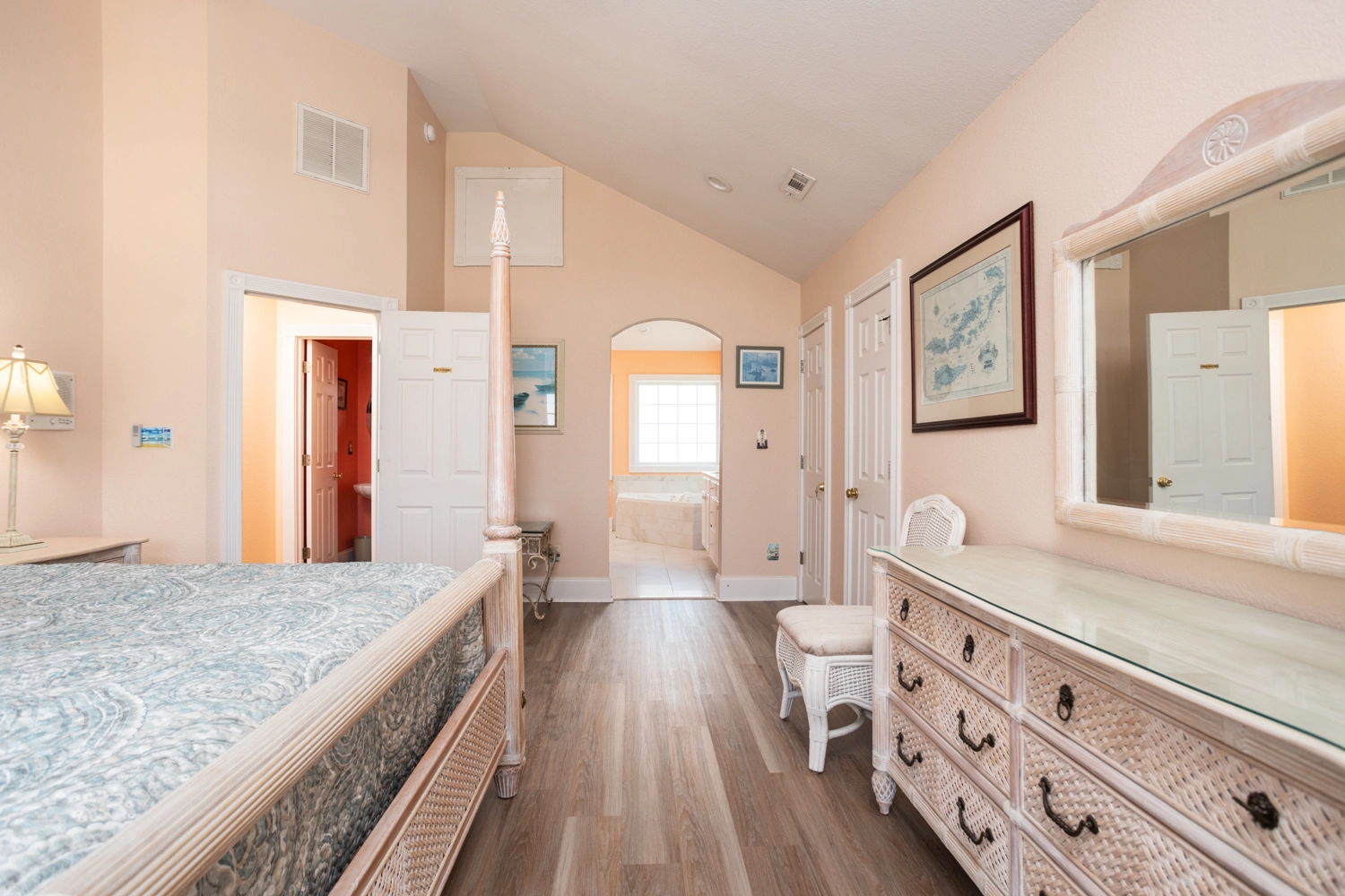 King, Standing shower, Whirlpool tub, Deck access