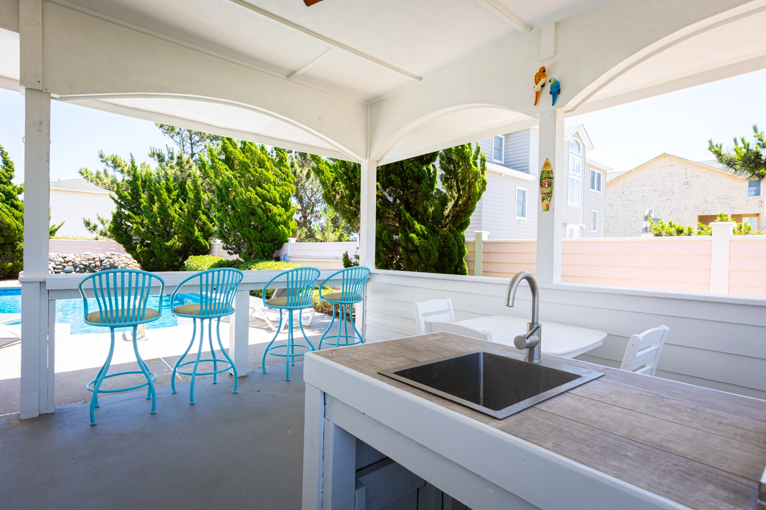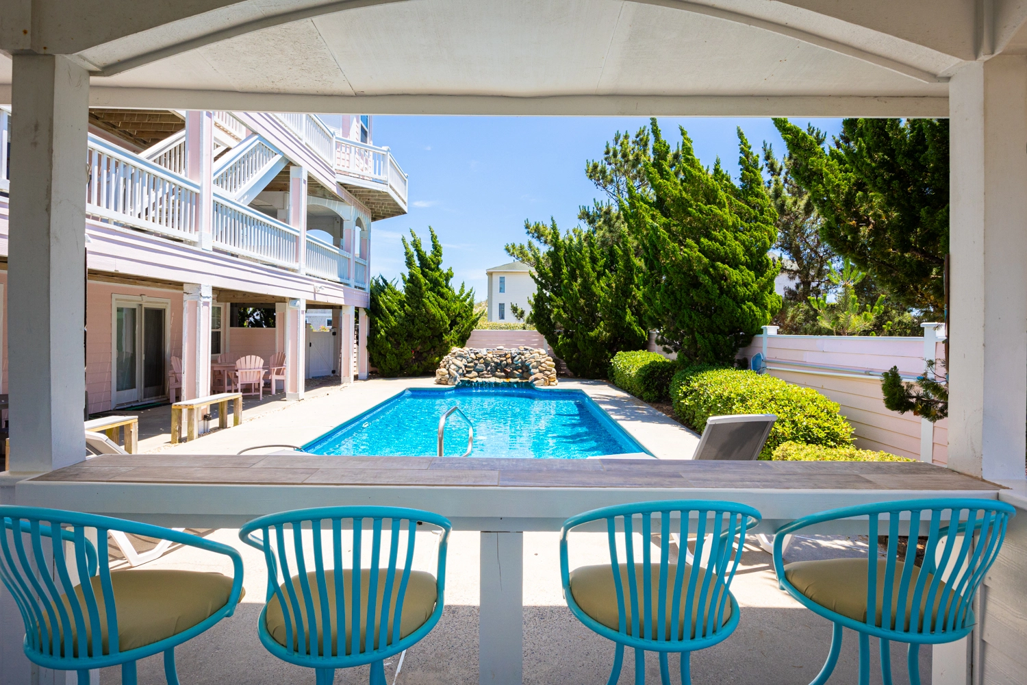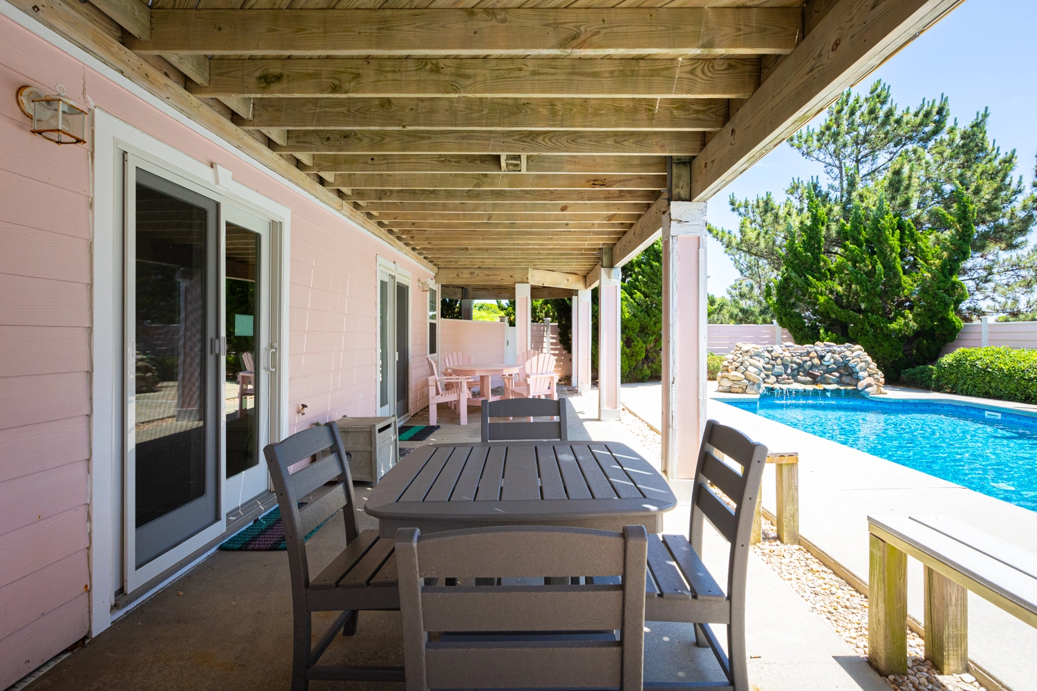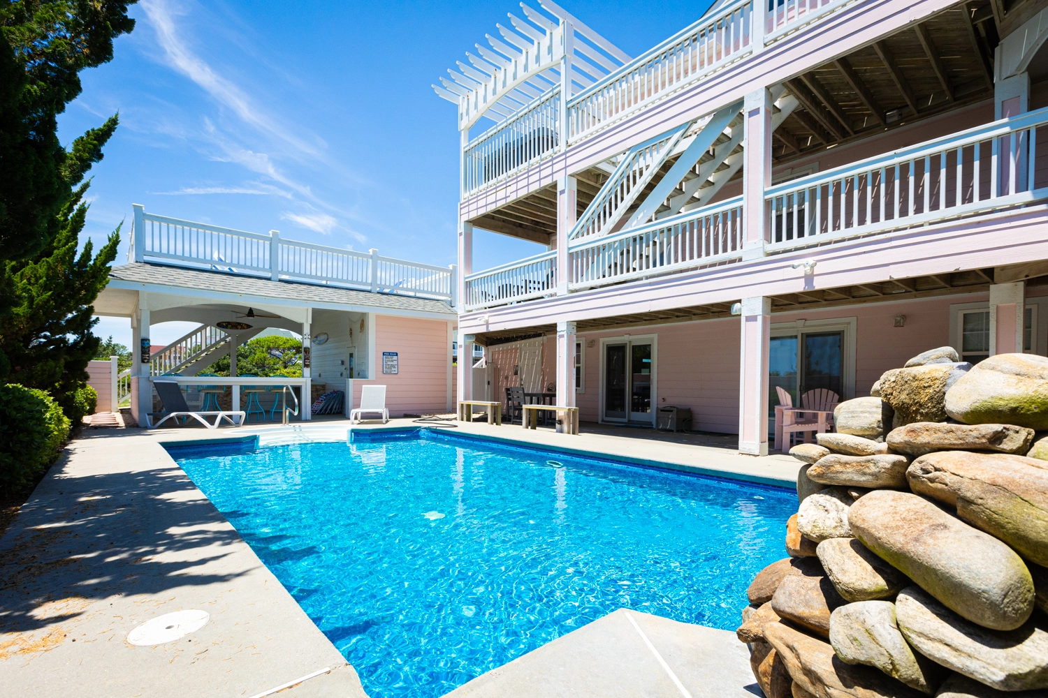 "Great living space and plenty of room for multiple families. We used the outdoor pool area as much as we could, and the bluetooth speaker systems were a nice added perk."