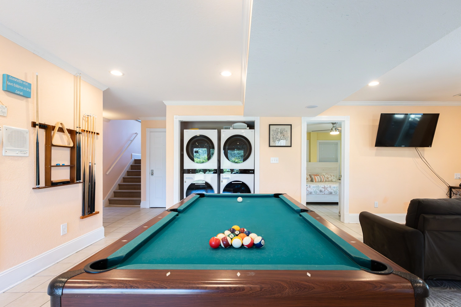 Rec room with pool table; double laundry.