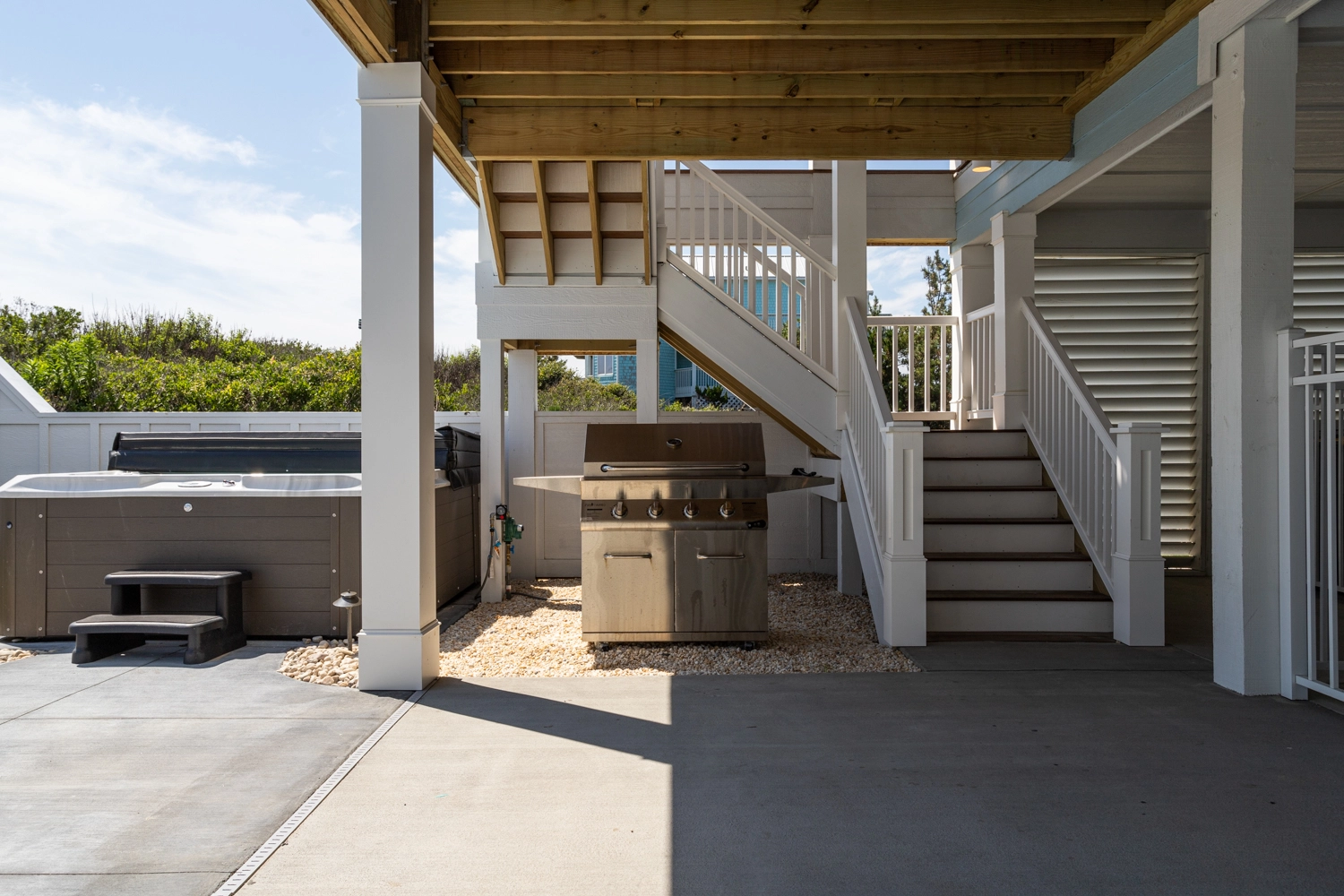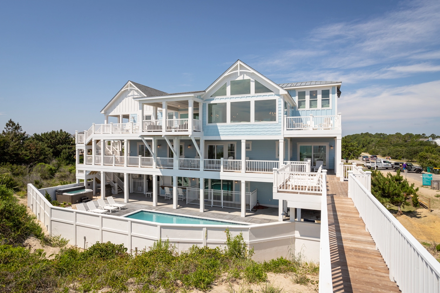 Tesla car charger (south carport), elevator, private pool, and hot tub, 12 beach chairs and 4 umbrellas in addition to the beach cabana plus service from May 25 - Sept 12, 2026 only (provides morning set-up and afternoon take-down of two umbrellas and six beach chairs on the beach).
