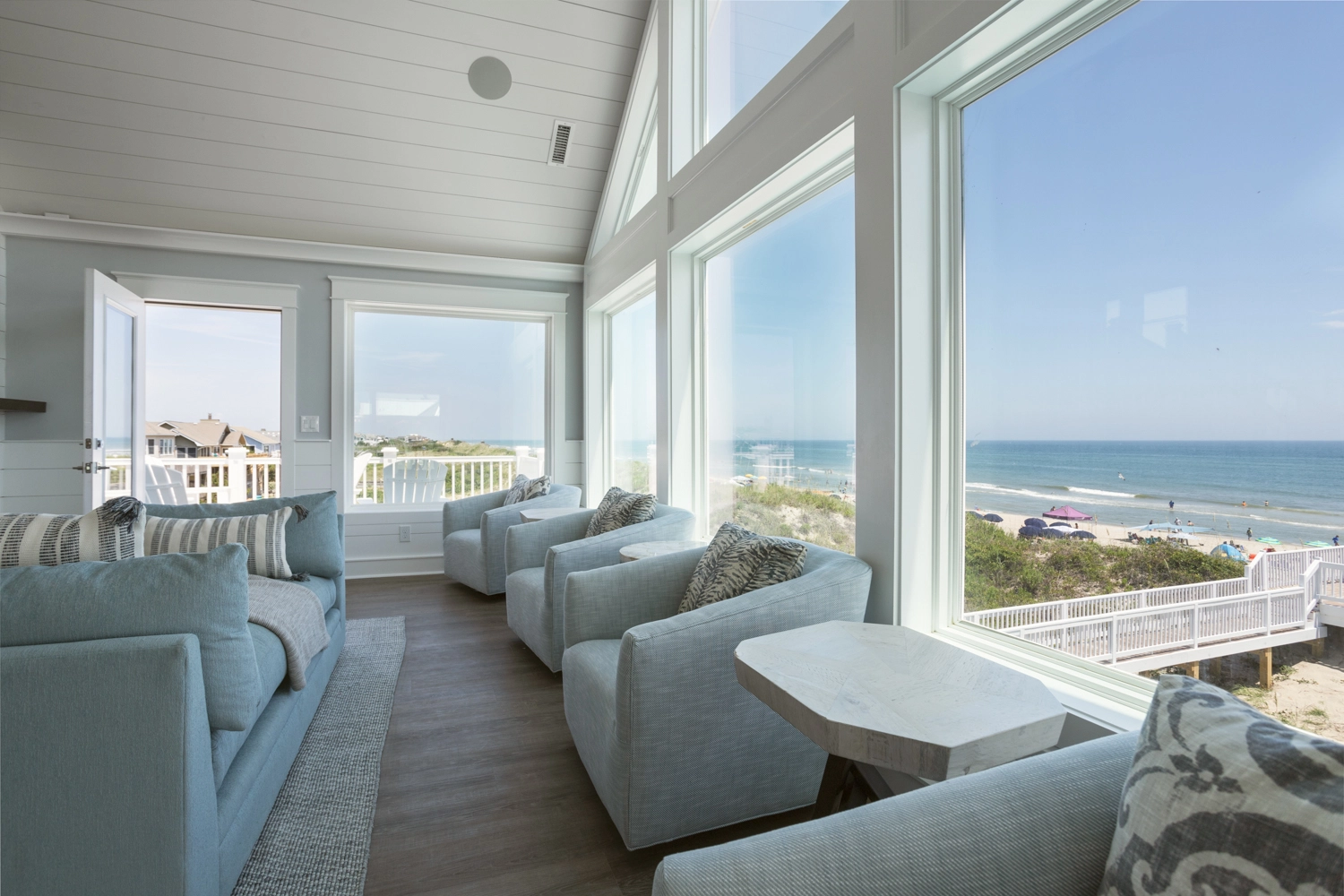 "I thought we'd stayed in great OBX houses before, including even more expensive rentals, but Spyglass was the best yet. The attention to architectural and construction detail and to providing "all the comforts" was just fine. The house was designed to give the guests the best imaginable appliances, cabinetry, furniture, and of course the views. . And since it was built only 2 years ago, everything was in perfect shape."
