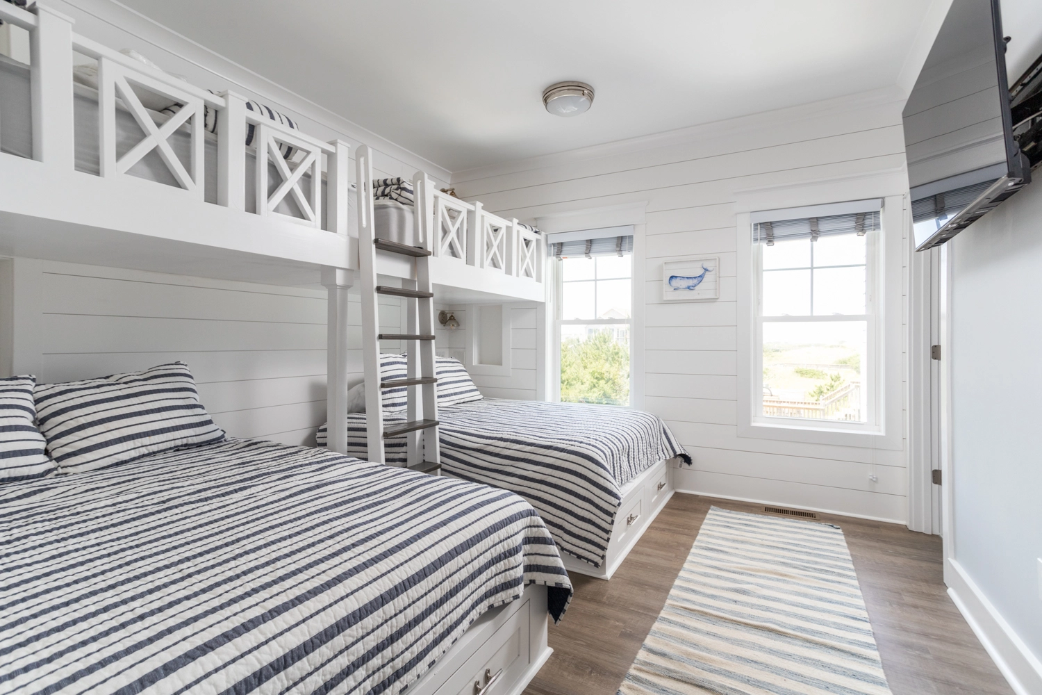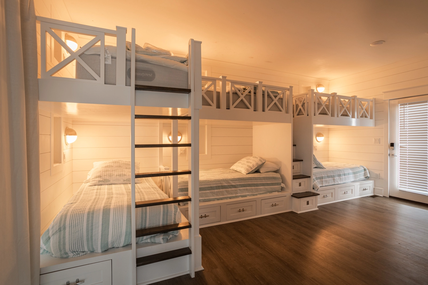 Two Bunk Sets with Twins over Queens, Shower/tub combo
