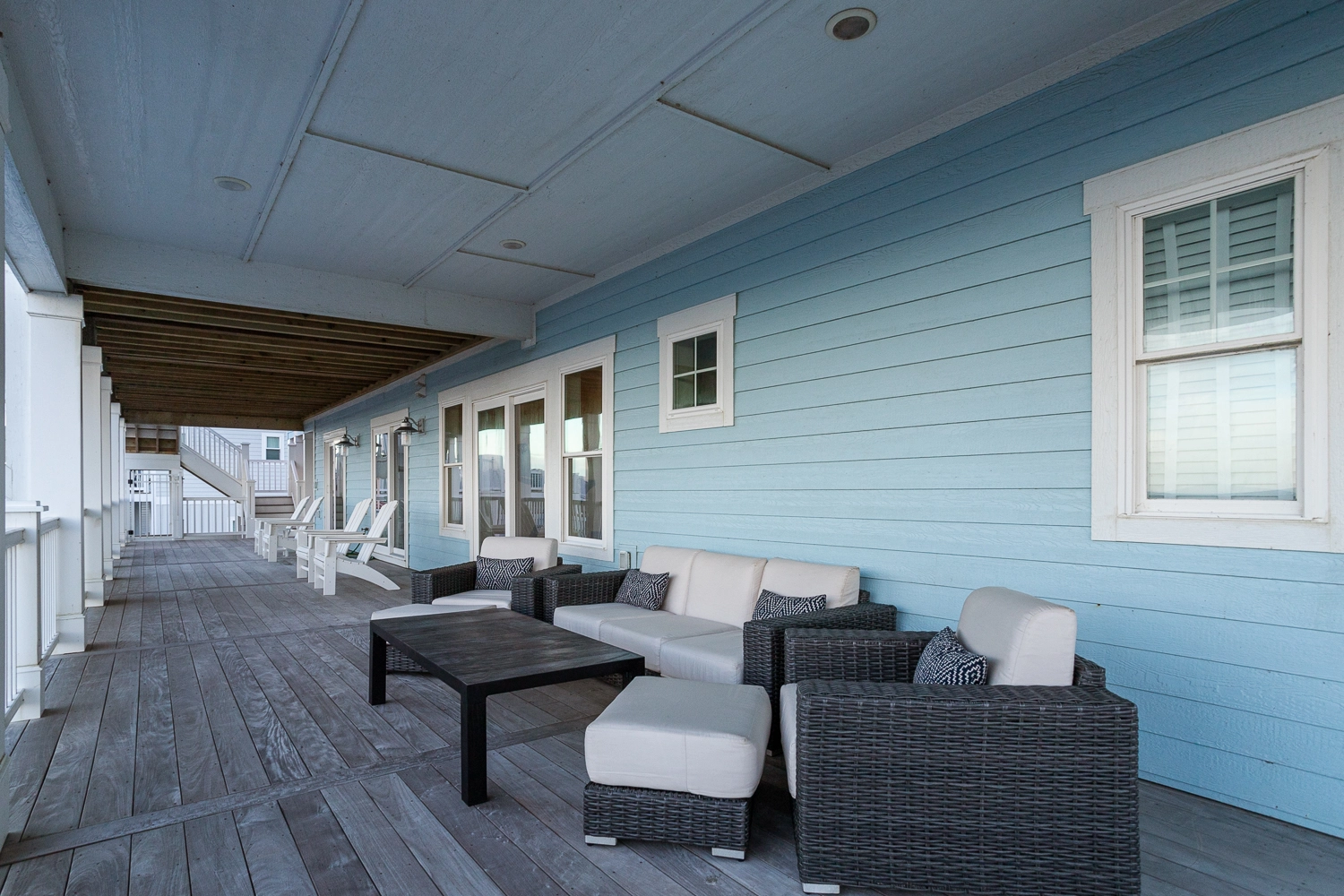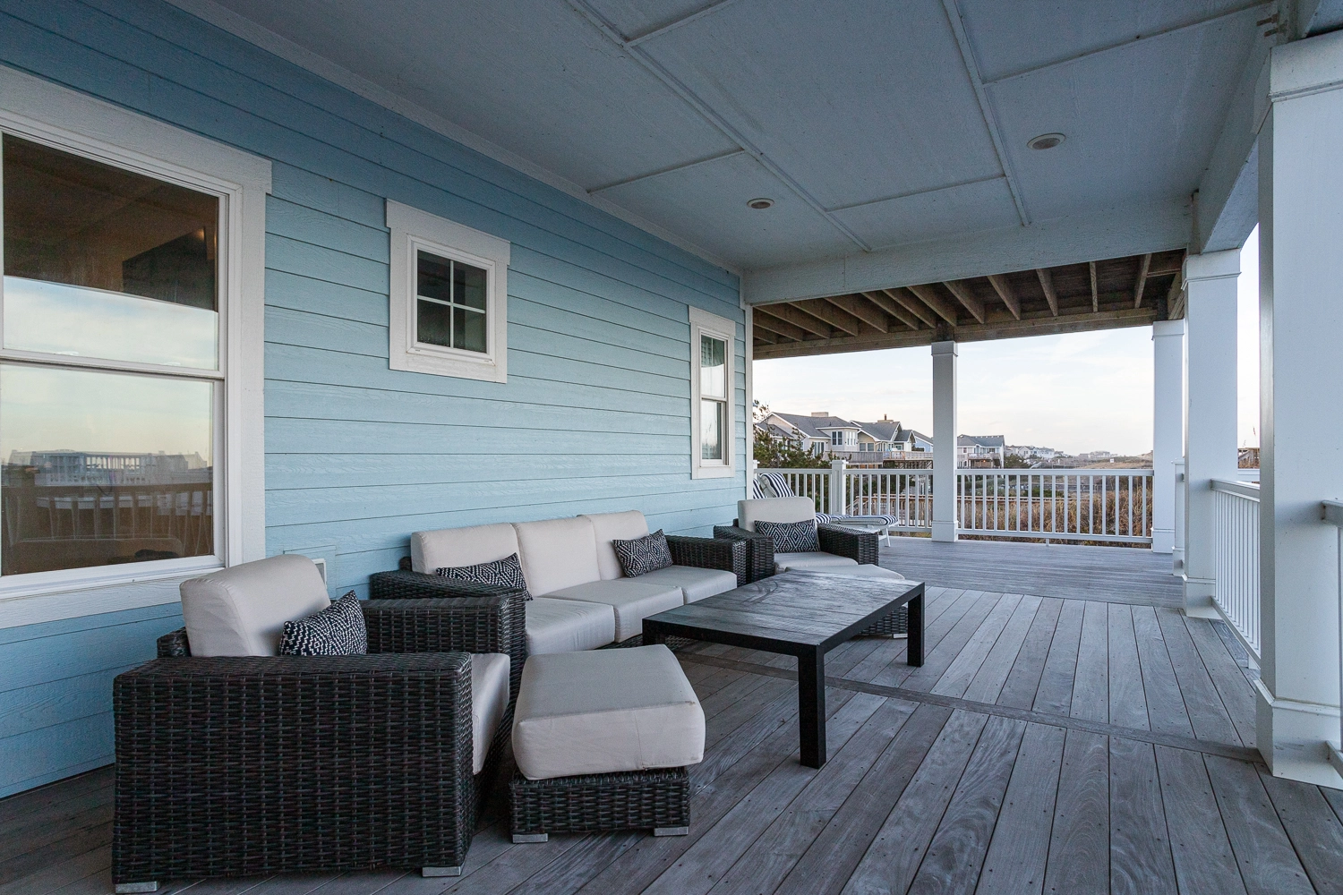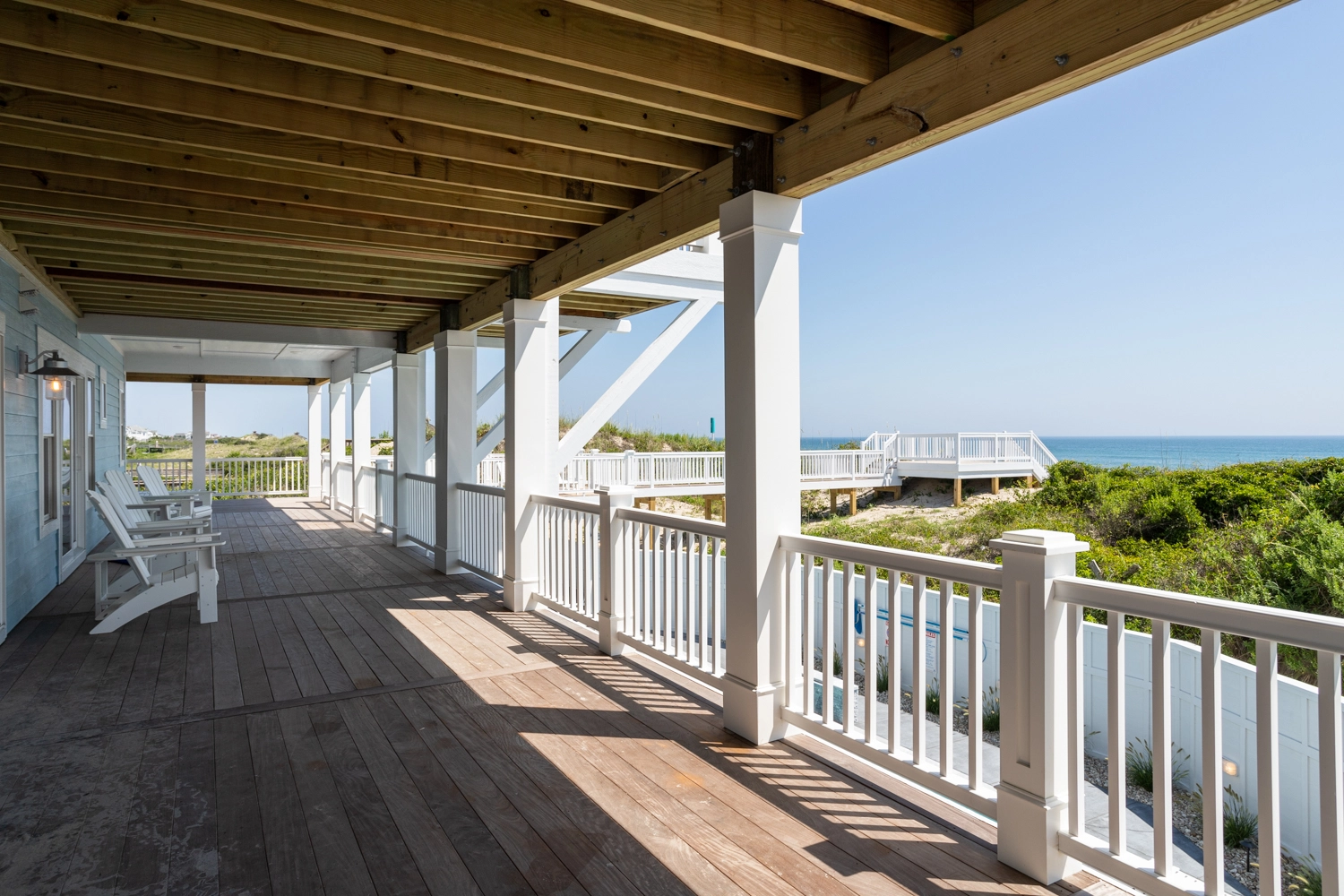 Thank you for the review; it makes us very happy to hear that you enjoyed the home. We have been coming to Whalehead for over 20 years. In our mind, Lighthouse Drive is truly the best that the OBX has to offer and the top cover lot is the best in Whalehead! We're all temporary custodians of our little slices of paradise so we are very appreciative of the time looking at the Ocean. We have a new pre-arrival manual that indicates the various beach games that we supply. Along these lines, we appreciate having things in place vs. packing the car! So in addition to the beach Cabana service (daily setup of 6 chairs and some umbrellas) we are now supplying 16 Tommy Bahama Chairs, 4 high-quality boogie boards, and extra umbrellas. Depending on the wind direction, there are either very few or many bugs. We power wash several times a season but will pay closer attention to this as we appreciate the time spent outside!