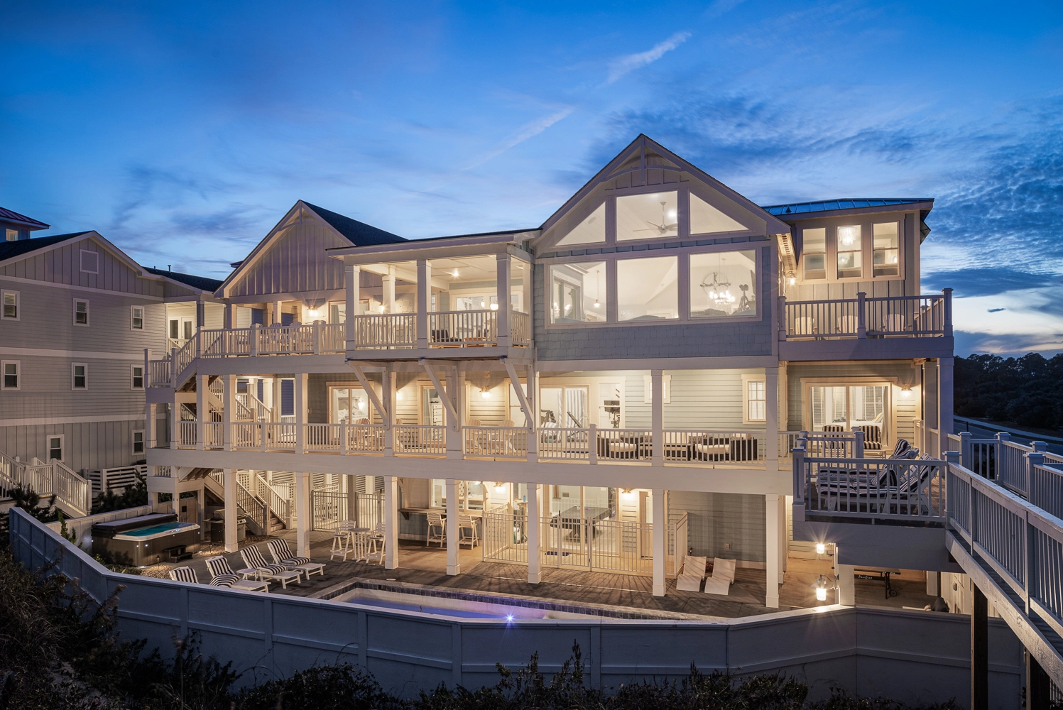 "The house itself is gorgeous with every master having an ocean front view. The house is well equipped with chairs, beach games and kitchen supplies (seafood boil pot, crockpot, etc). The annex is perfect for our older kids to have their own space to hangout. Location is great! Walking distance to several coffee options in the morning, the taco bar and pizza places for lunch."
