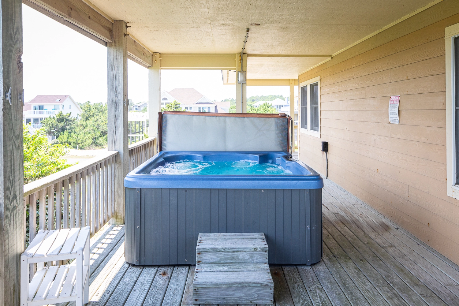 Laundry; hot tub.