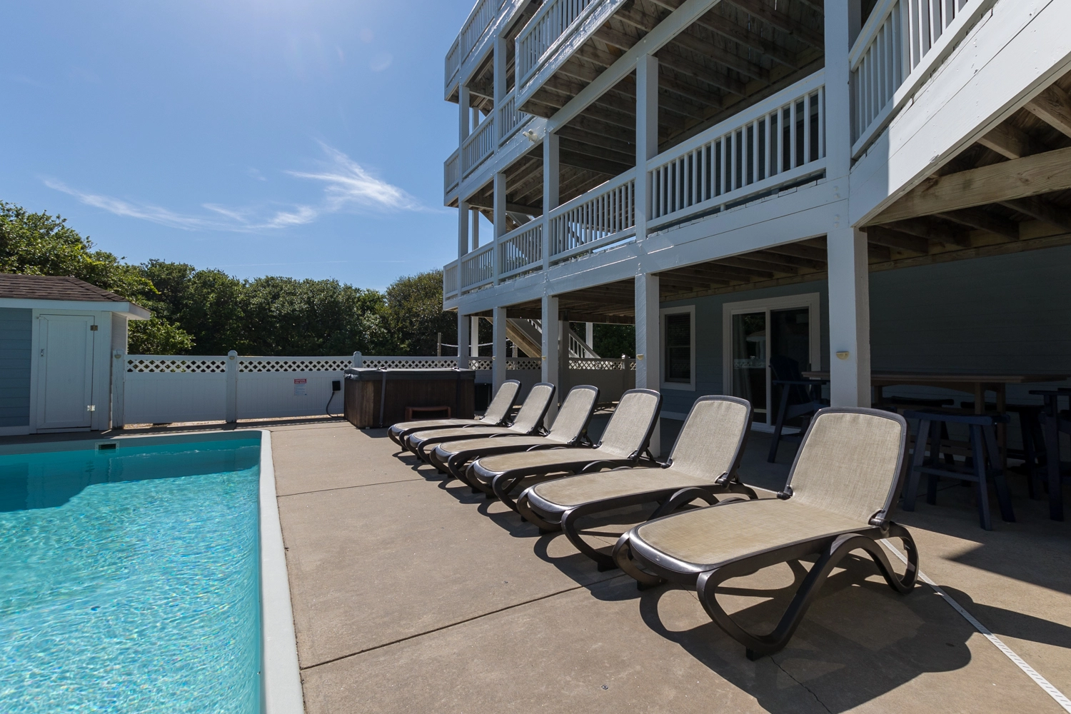 "I usually come down to the OBX twice a year in a different house each time, and honestly this was my favorite. plenty of pool lounges, the whole yard gets sun, close to the beach, and a huge pantry. it could use a bigger fridge in the basement, maybe a table outside by the pool, and the ice machine on the fridge upstairs kept messing up minor inconveniences though. i want to book this house each time i come down from now on! thank you for the lovely experience"