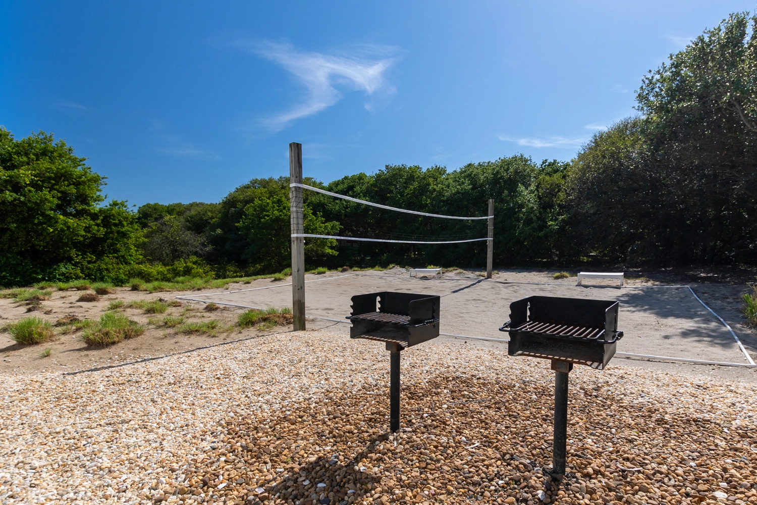 "Sand Volleyball court, outdoor furniture, nice large refrigerators, comfortable beds, location, decks"