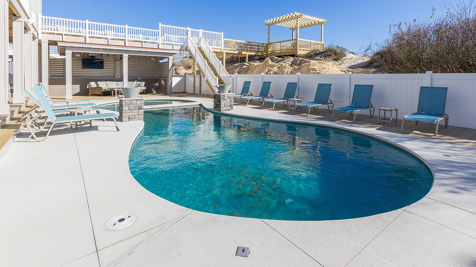 "This house is absolutely beautiful. The view of the ocean makes you never want to leave the living room. There are balconies all the way around the house so you can catch every bit of the sunset and sunrise. The beds are comfortable and spacious, giving you and your party plenty of space to spread out. We got the pool heated for the week and it was SO worth it. Everyone was playing outside, in the pool, beach, and hot tub, having the time of our lives. We cannot wait to return. Twiddy's service was amazing as always and any time we needed anything, they were extremely responsive."