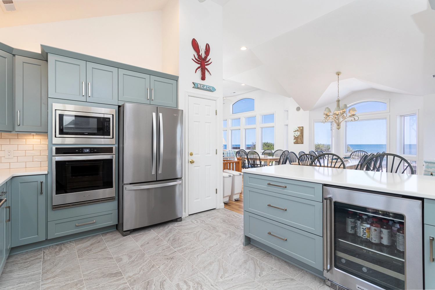 Great room with hardwood floors, entertainment center and ocean view; open kitchen with granite countertops and double wall ovens, two dishwashers, island bar, wet bar and wine cooler; dining room with ocean view; screened porch with ocean view; open decks.