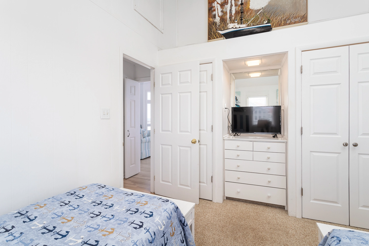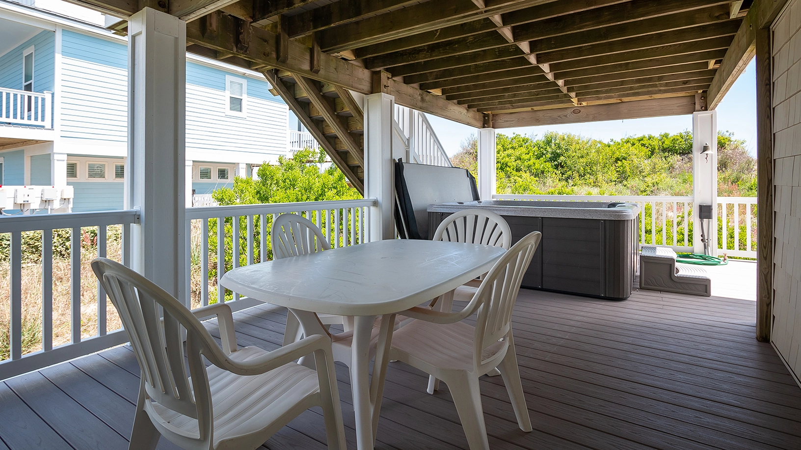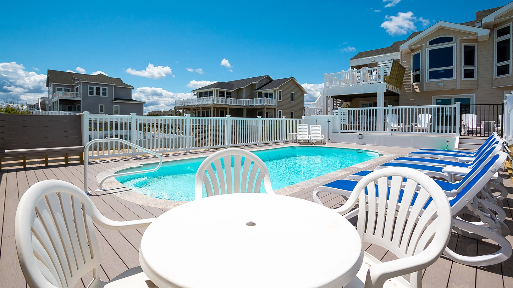 Den with entertainment center, game table, wet bar with refrigerator, dishwasher and microwave; laundry room. Open decks with hot tub, optionally-heated saltwater pool and private walkway to dune deck.