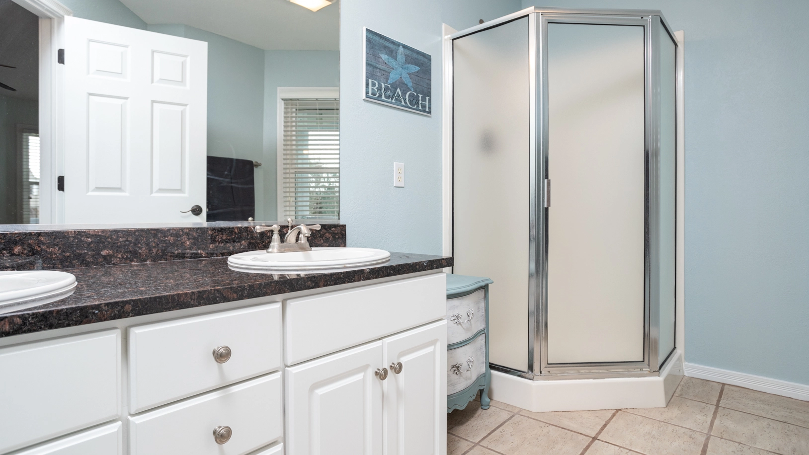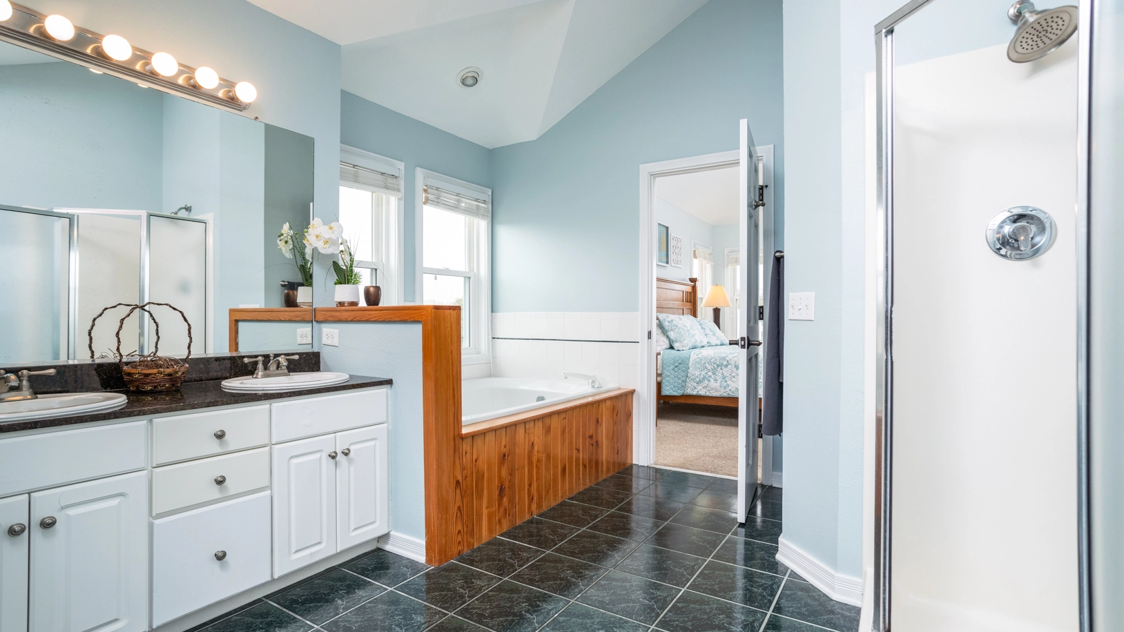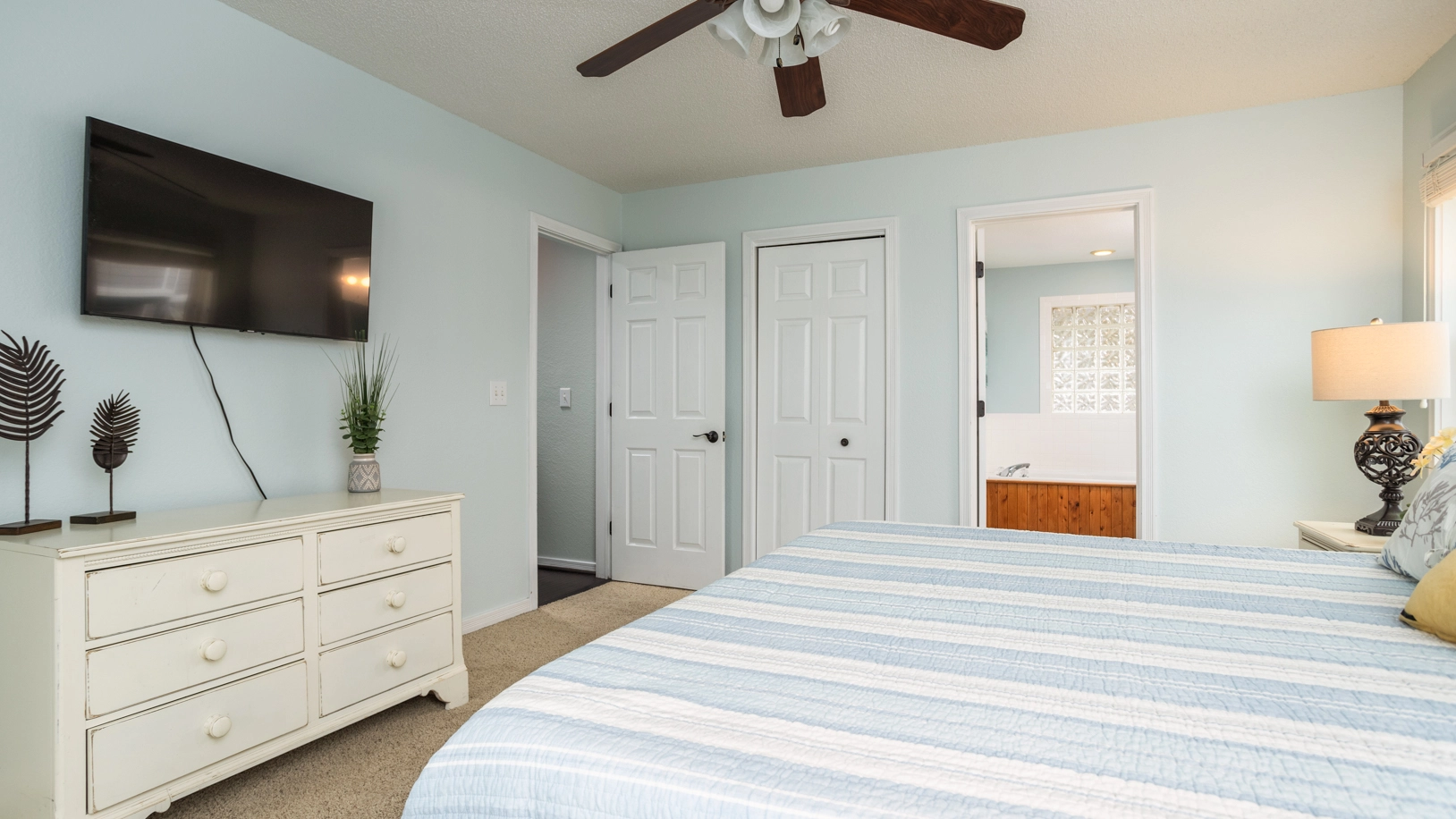 "The home was very spacious. We had ample space to gather together while still being able to retreat to somewhere private when needed / wanted. Beds were comfortable. We were able to see a bit of the ocean and hear the waves from the upper deck. The kitchen was of adequate size for our group of 15 to prepare meals and eat together. The number of bedrooms with en suite bathrooms was a key feature that drew us to this home. Relatively quick (4-5 minutes, .2 mile) walk to the beach."