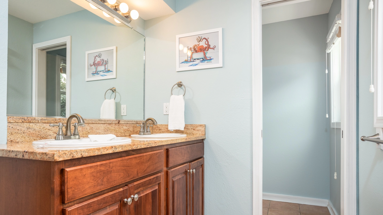 "The pool, hot tub, amount of rooms, theater room and layout was good for us. The walk to the beach was easy. We all wish the kitchen sink had a disposal and the kitchen faucet sprayed everyone who tried to use it (This should be an easy fix). The house exterior could use some TLC, but still cute. All in all the house fit our needs and we had a great family vacation."