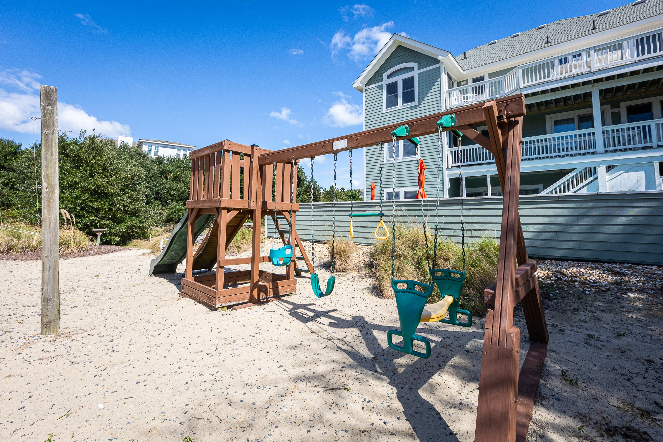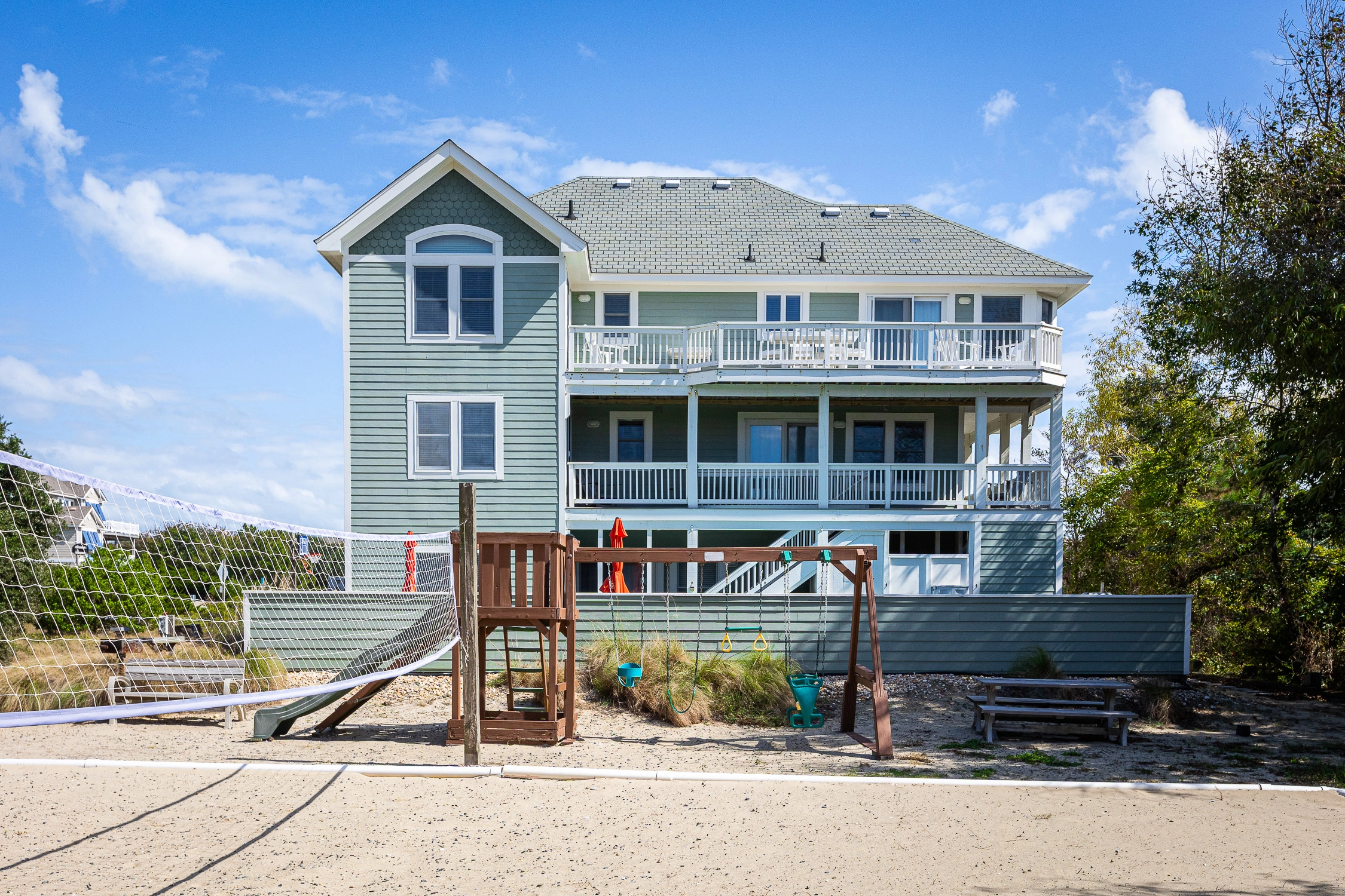 "AMAZING!! What a fantastic house with its location to the beach and the town and all of the extras at the house. You want to play a game or do a puzzle? They have lots of them! You want to make a margarita? They have a machine for that! You want to put up gates to keep the little ones safe? They have those-along with other things for babies such as a high chair, pack and play and even sippy cup and plastic dishes! You plan to spend the day at the beach? They have lots of beach chairs and a wagon to bring everything you'll need! You want to just stay at home and chill? They have a reading nook with lots of books, a media room, the pool table and even an arcade game with Ms. Pac Man and Galaga and don't forget the playground and volleyball and basketball courts! You want to spend time by the pool? They have floaties, lots of chairs and umbrellas you can move to protect you from the sun but yet still be in the pool, oh and the hot tub! You want to bring your dog? They allow that and even have bowls and mats for them! Another perk is that this house is rented from Sunday to Sunday which made getting to the and from the area so much easier than when we came in and out on a Saturday."
