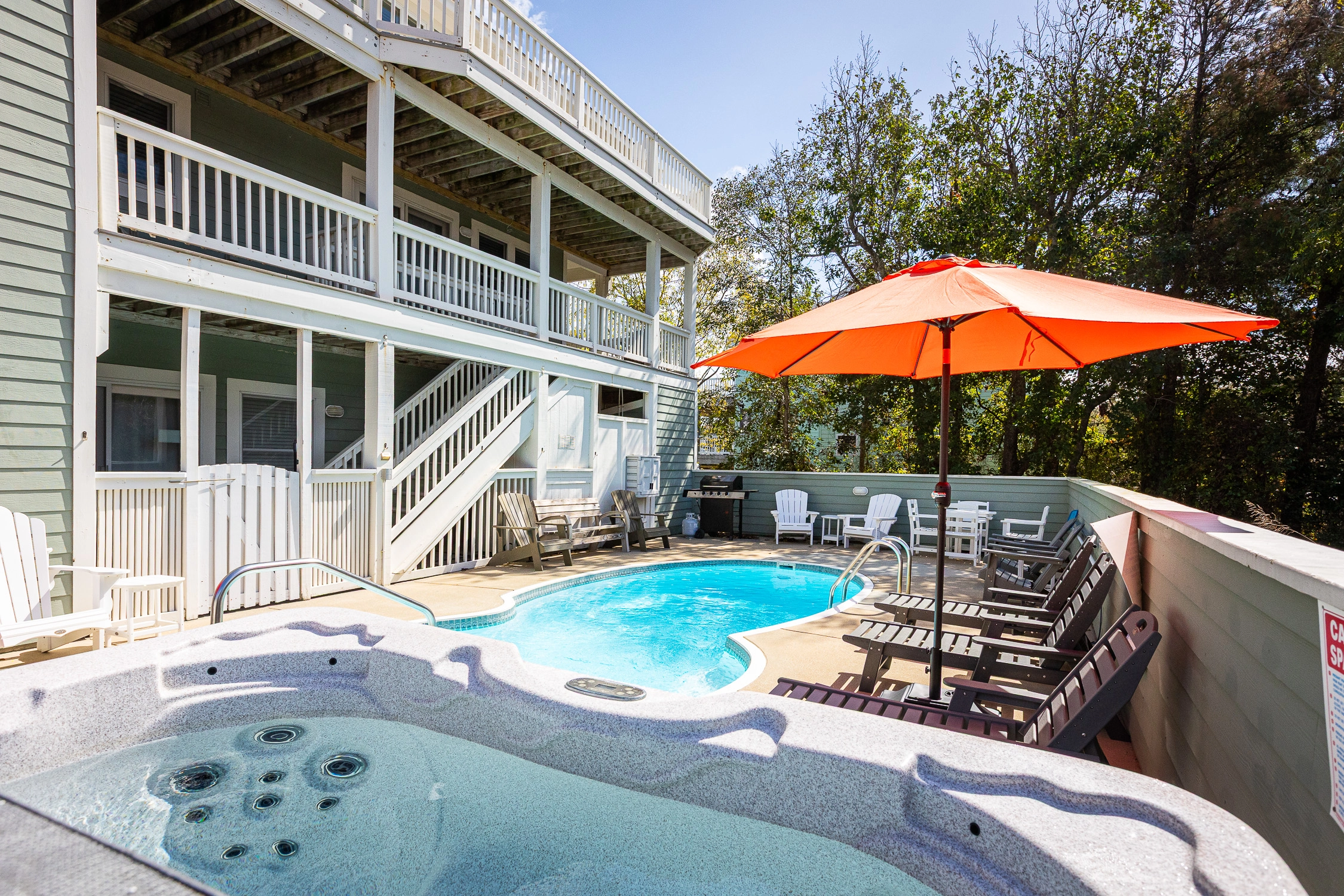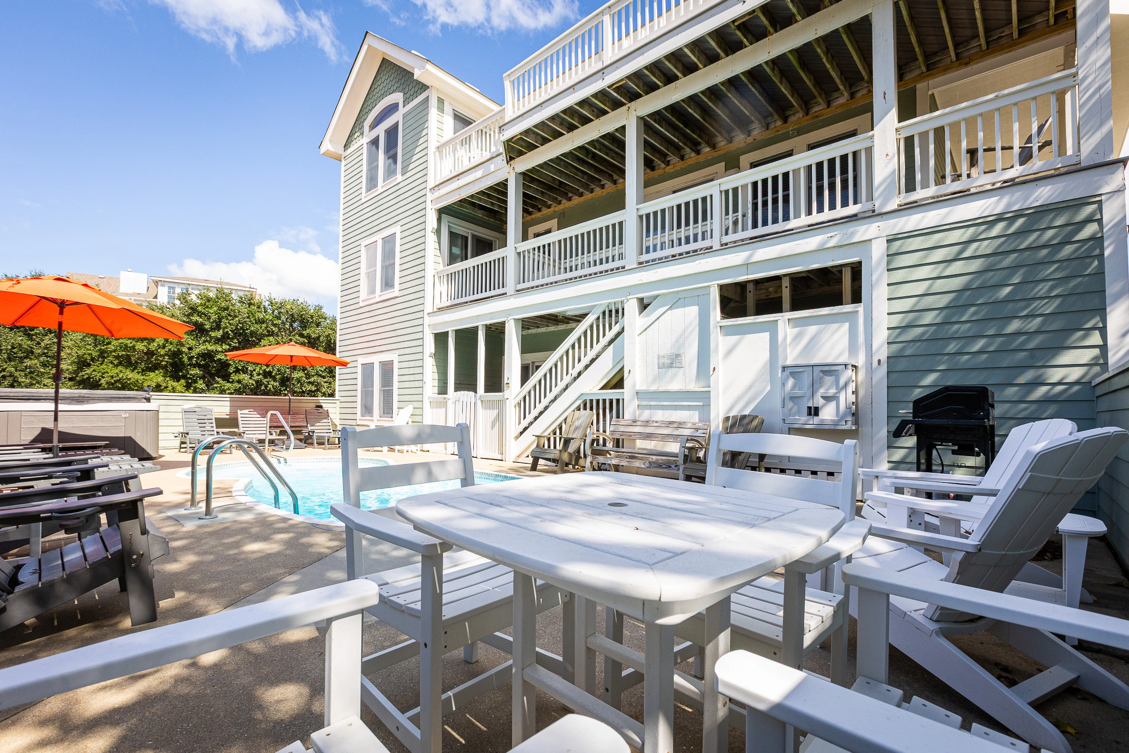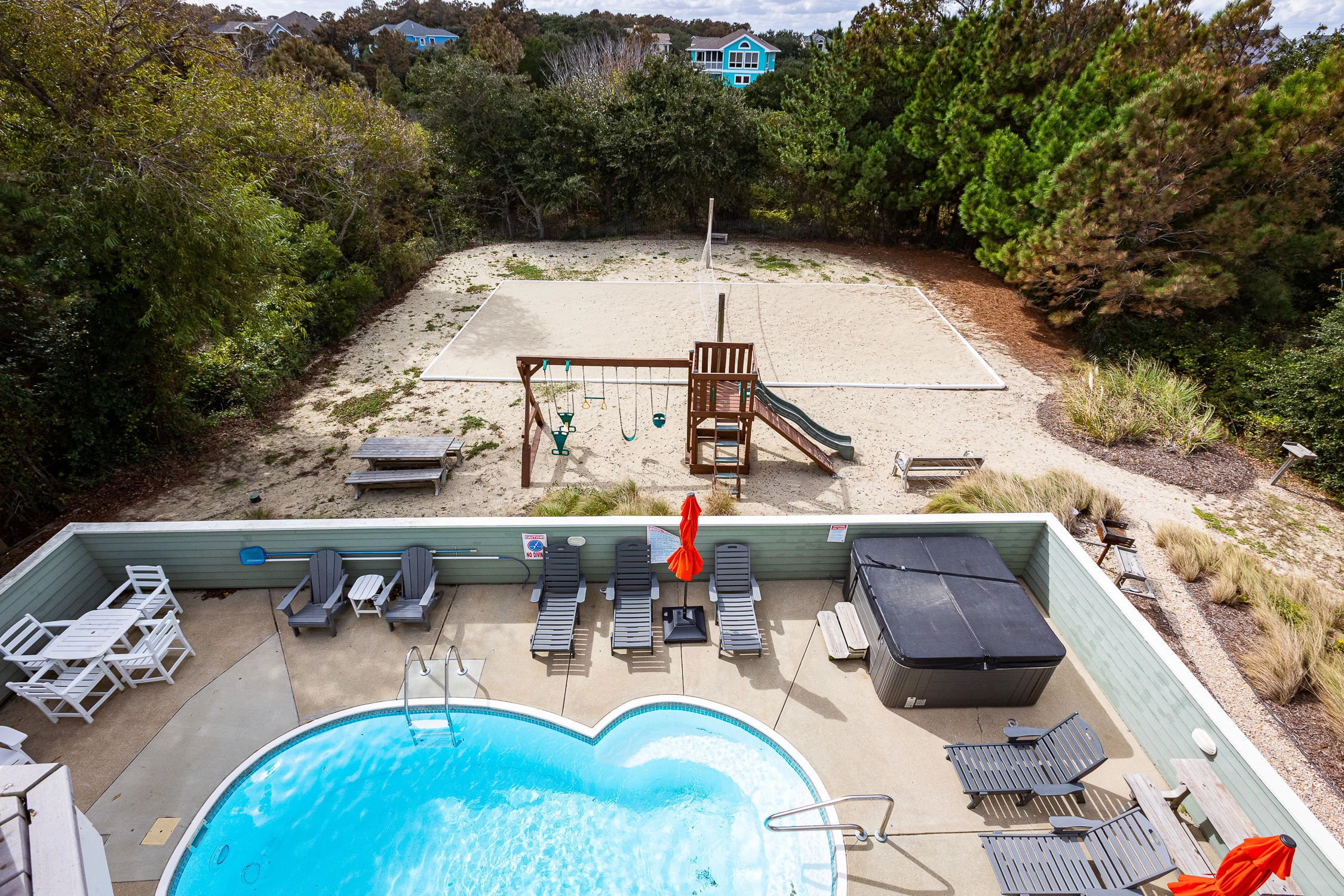 Private pool with option to heat (not available July/August), hot tub, basketball goal, gas and charcoal grills, volleyball set, horseshoe pit and play set.