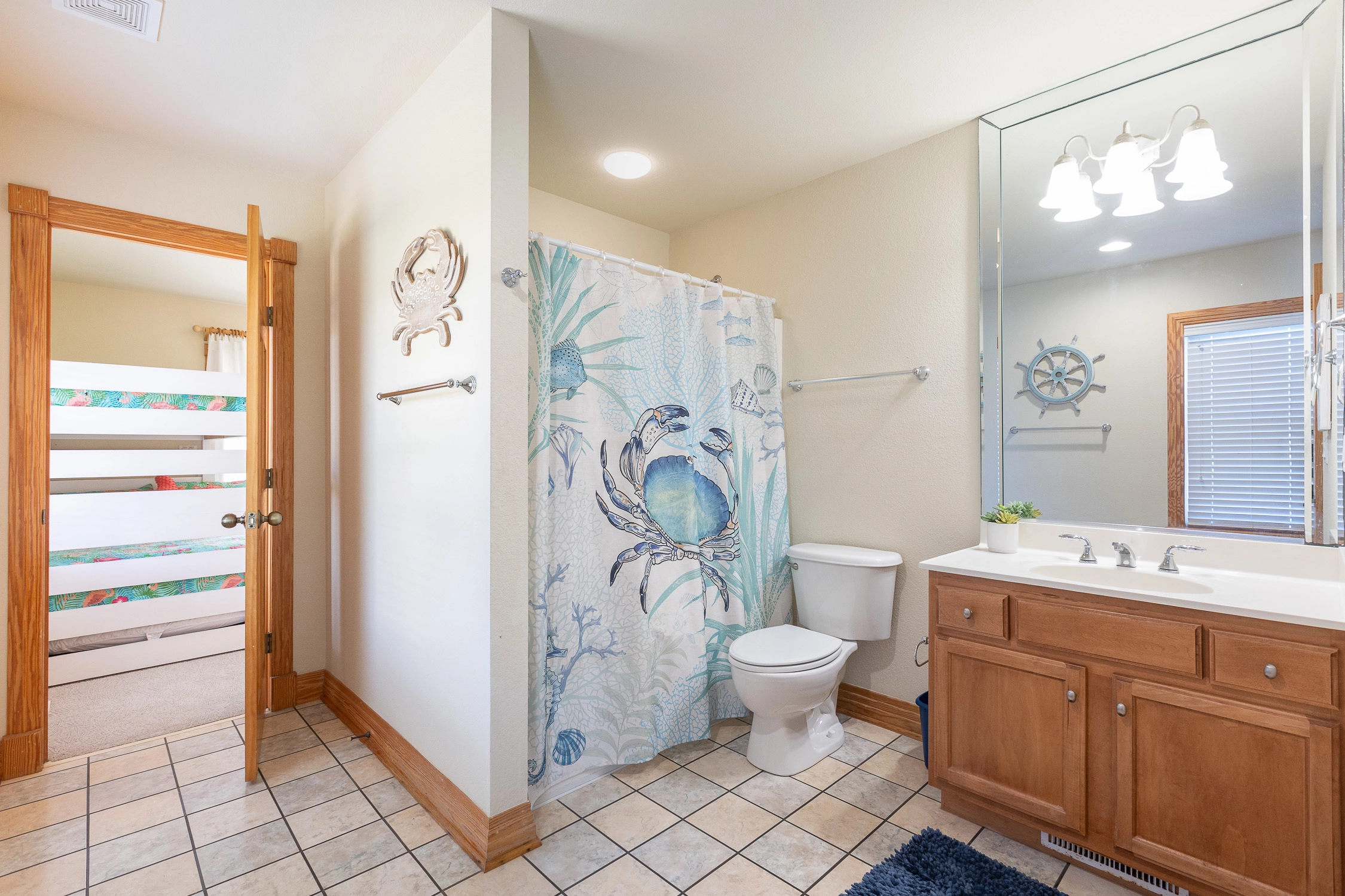 Duo Bunk Set, Shared full bath with Room 1, Shower/tub combo, Deck access