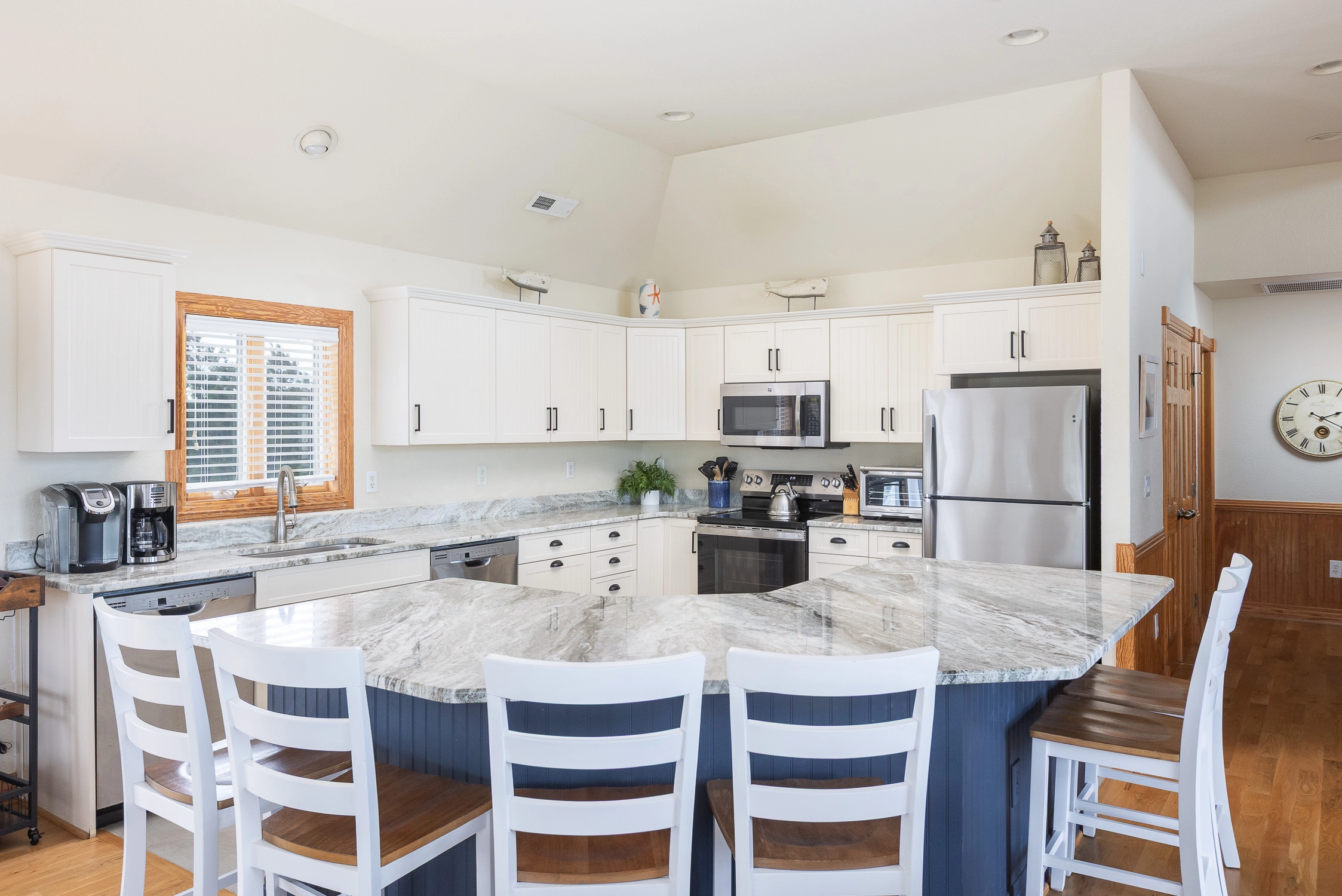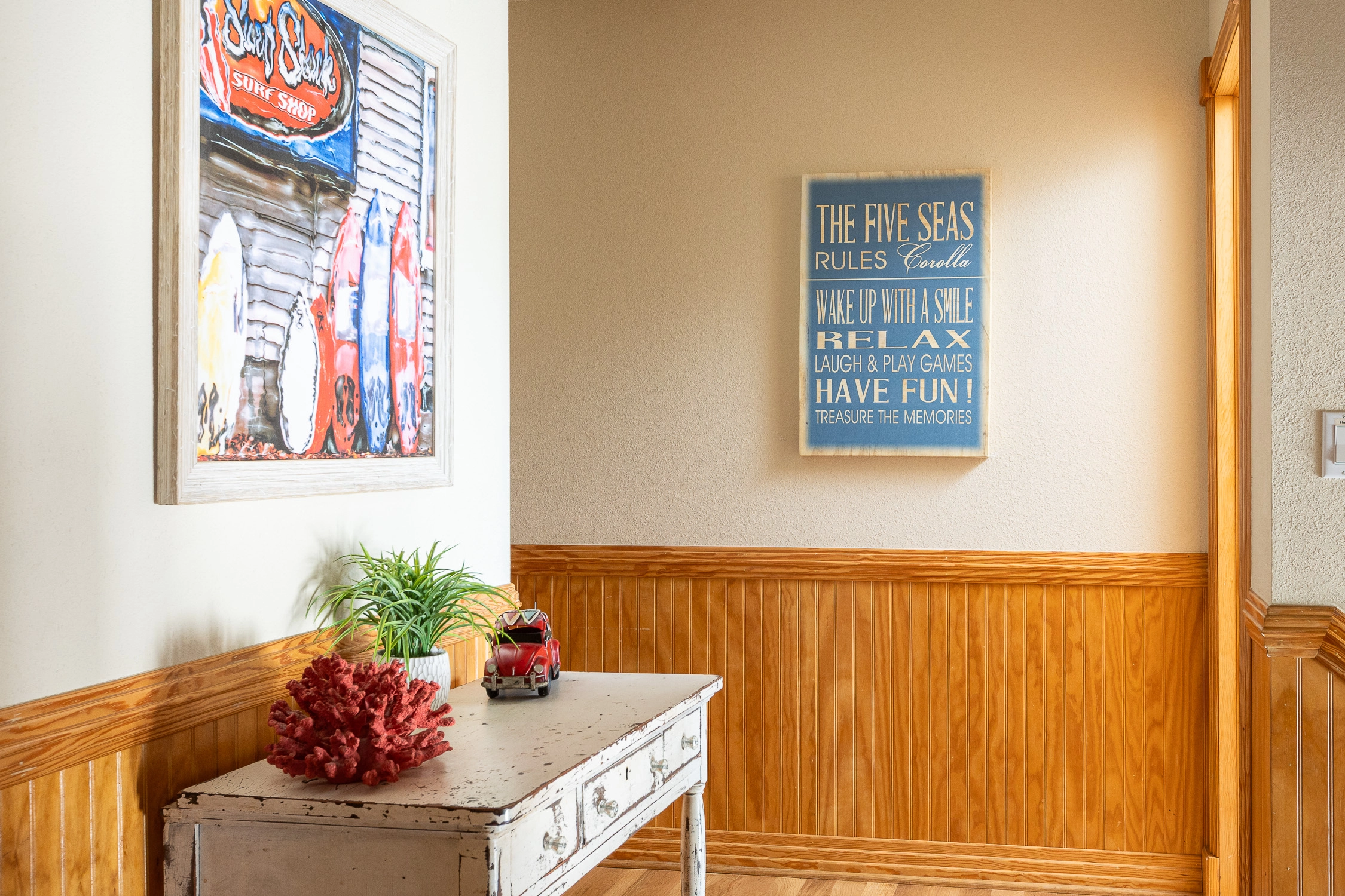 "The Five Seas was overall a very nice beach house and my family really enjoyed it! The home was very nicely decorated, bright and had a beautiful, huge kitchen! Lots of space and decent updates made this home very comfortable. The only things which could use some improvement is the pool is quite small and the pool table (billiards) and pool sticks badly need replaced. The location was very good. The beach was close and only about a 5 minute walk with easily accessible walkway straight to the public access. Grocery stores, shops and attractions all within a few minutes drive from the house."