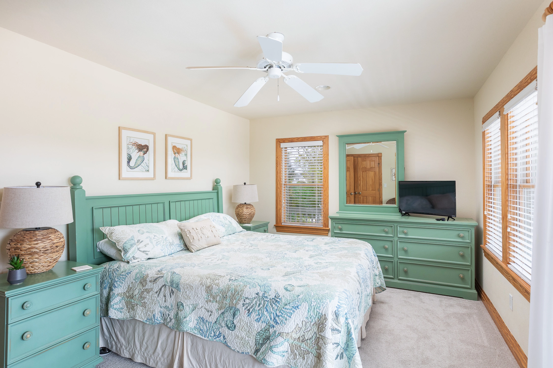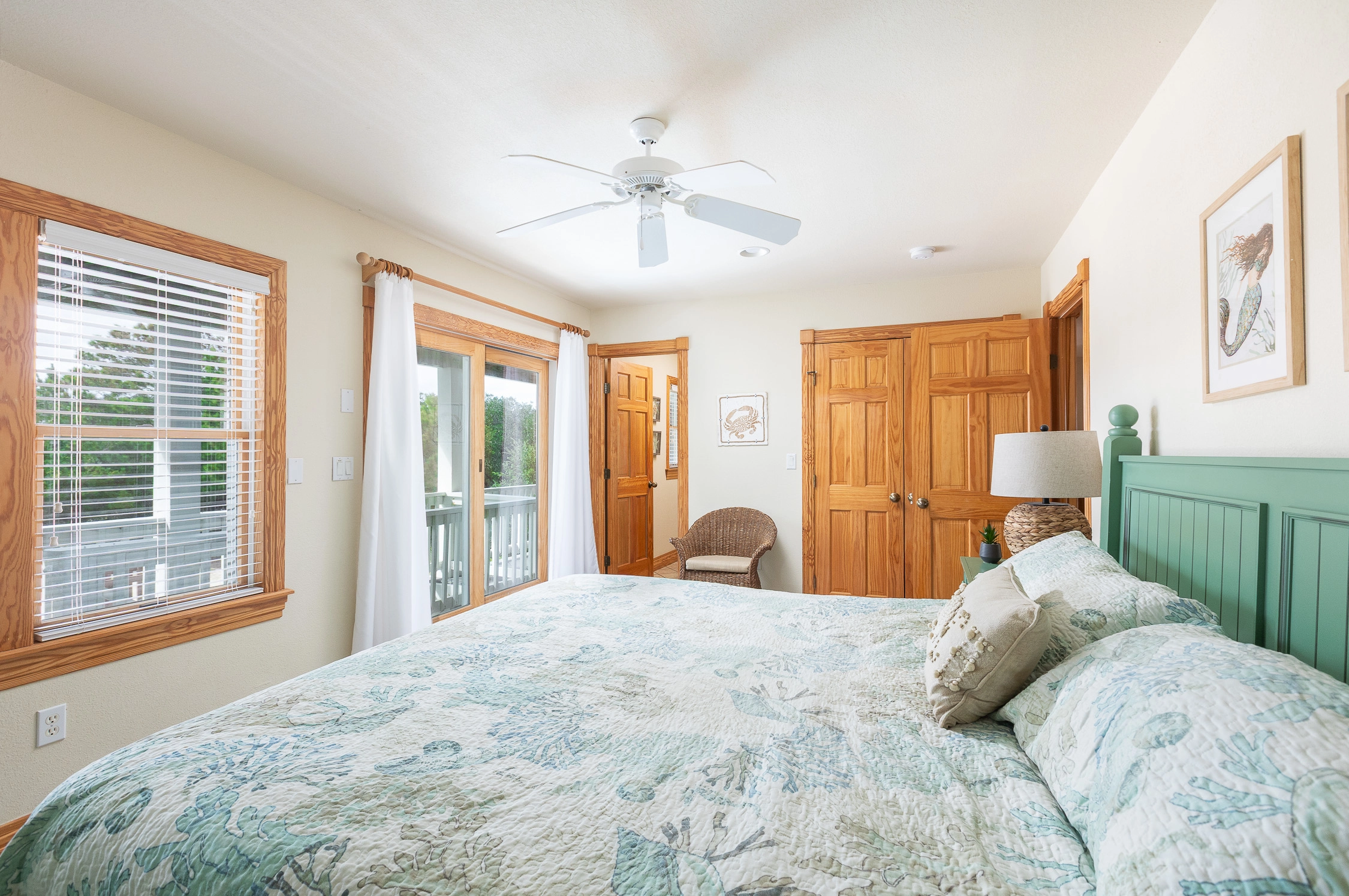 King, Shared full bath with Room 2, Shower/tub combo, Deck access