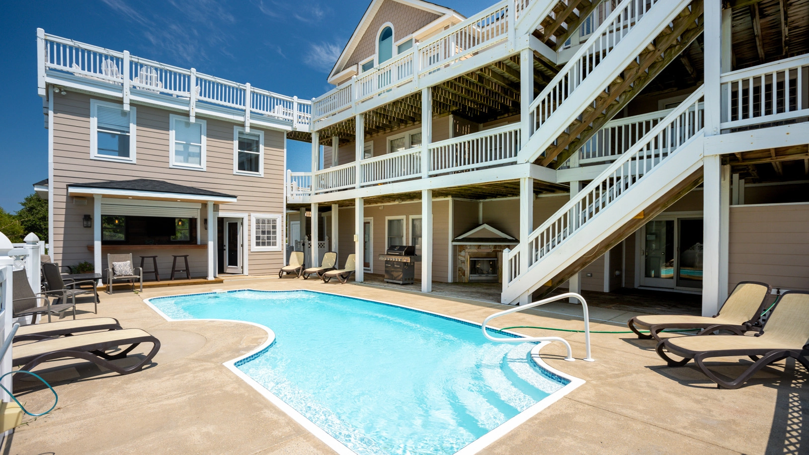 "It was easy to fall in love with this home. We’ve rented 6 homes from Twiddy and the Fountain House is by the far the best home we’ve stayed in. The house fit our 22 guests comfortably. Many upgrades in the home made our stay so enjoyable. The outside pool cabana and beach volleyball court were our favorite places to hang out. The ice machines were a huge money saving bonus. Views from the crows nest and the lounge area above the cabana were breathtaking. Any repairs needed were taken care of by Twiddy in a timely manner. The theater did not work upon our arrival. We bought an HDMI cord to get us by until a tech arrived. One mini fridge in the cabana did not work, but the house has many other refrigerators to hold our things. Two of the larger bedrooms are designed without doors on the bathrooms which took some getting used to. All the bedrooms and mattresses were comfortable and we slept soundly. The walk to the beach is an easy one. This is definitely a home we would rent again and would recommend to anyone."