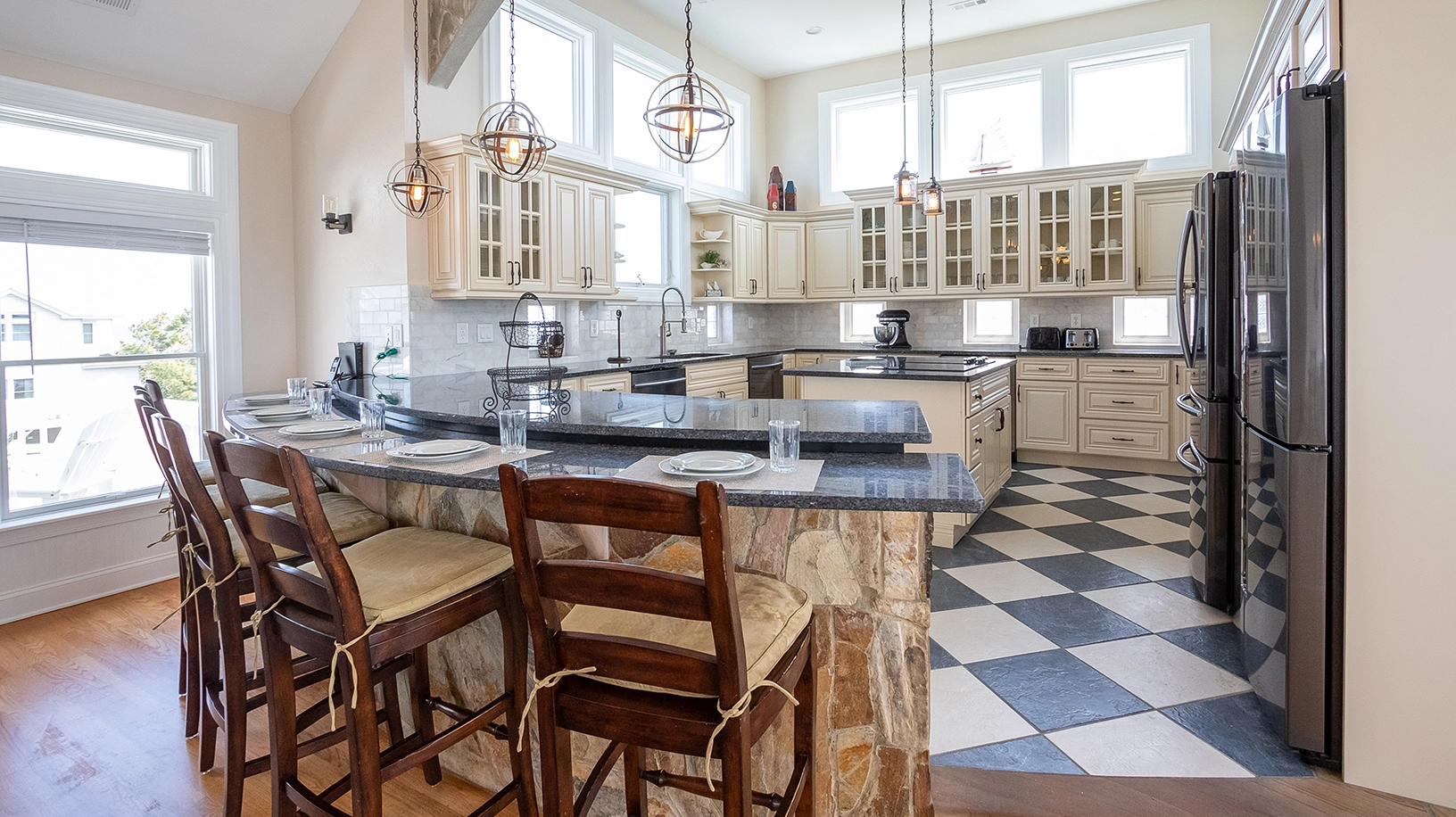 "The house is very spacious and well laid out. The kitchen and living room area really make the house special. The one ping is the house is advertised as no pets allowed. Either previous renters or someone had a dog in the house. there was dog hair all over the carpets and furniture in the open room next to the kitchen. My wife and I vacuumed and cleaned up even after the house was cleaned by the cleaning crew. Twiddy did send someone in to commercially clean which helped."