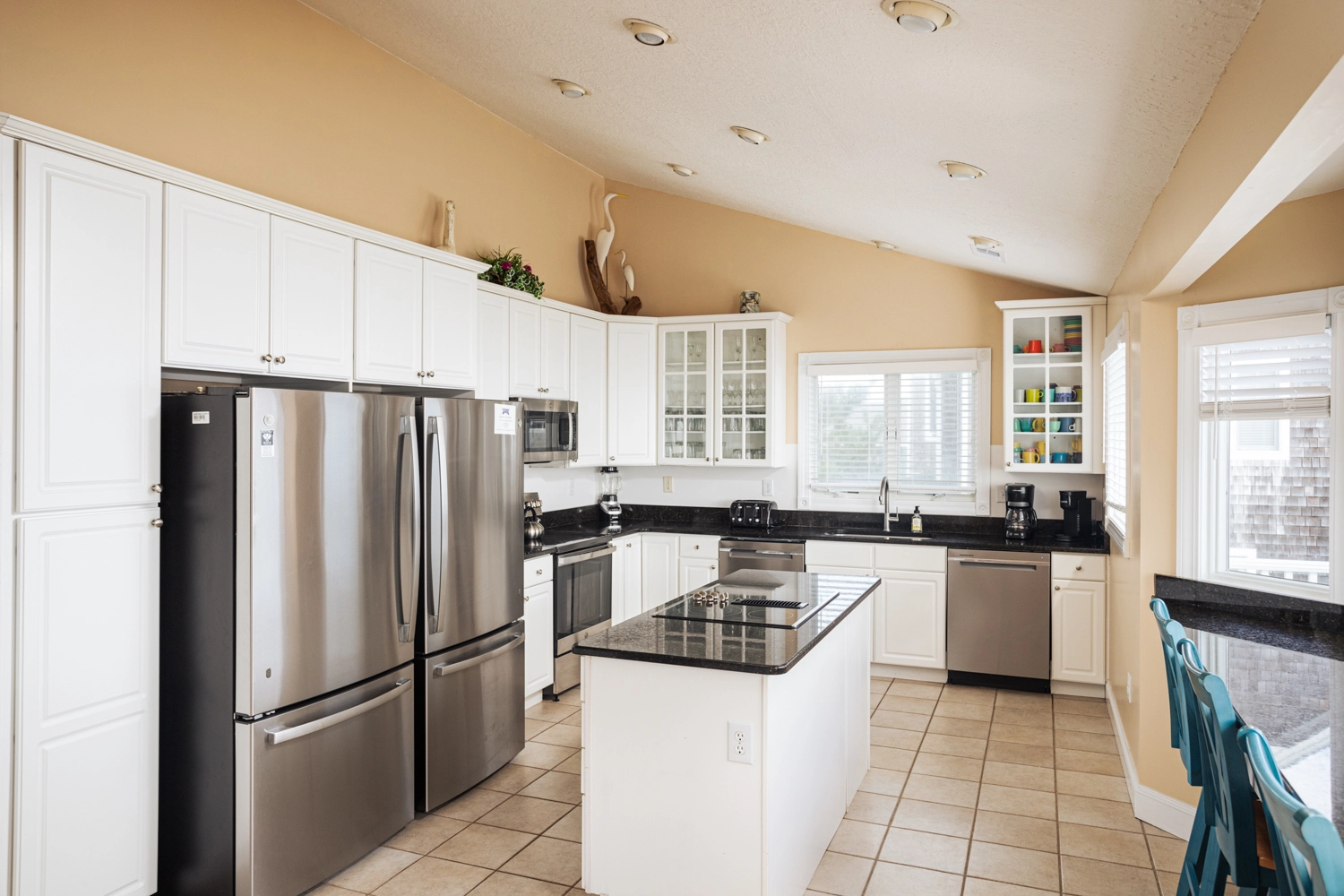 "2 full size refrigerators, Full range/microwave plus additional multi-burner island cook top, well stocked kitchen, large capacity ice maker, new washer/dryer, composite deck, elevator, easy access beach walkway."