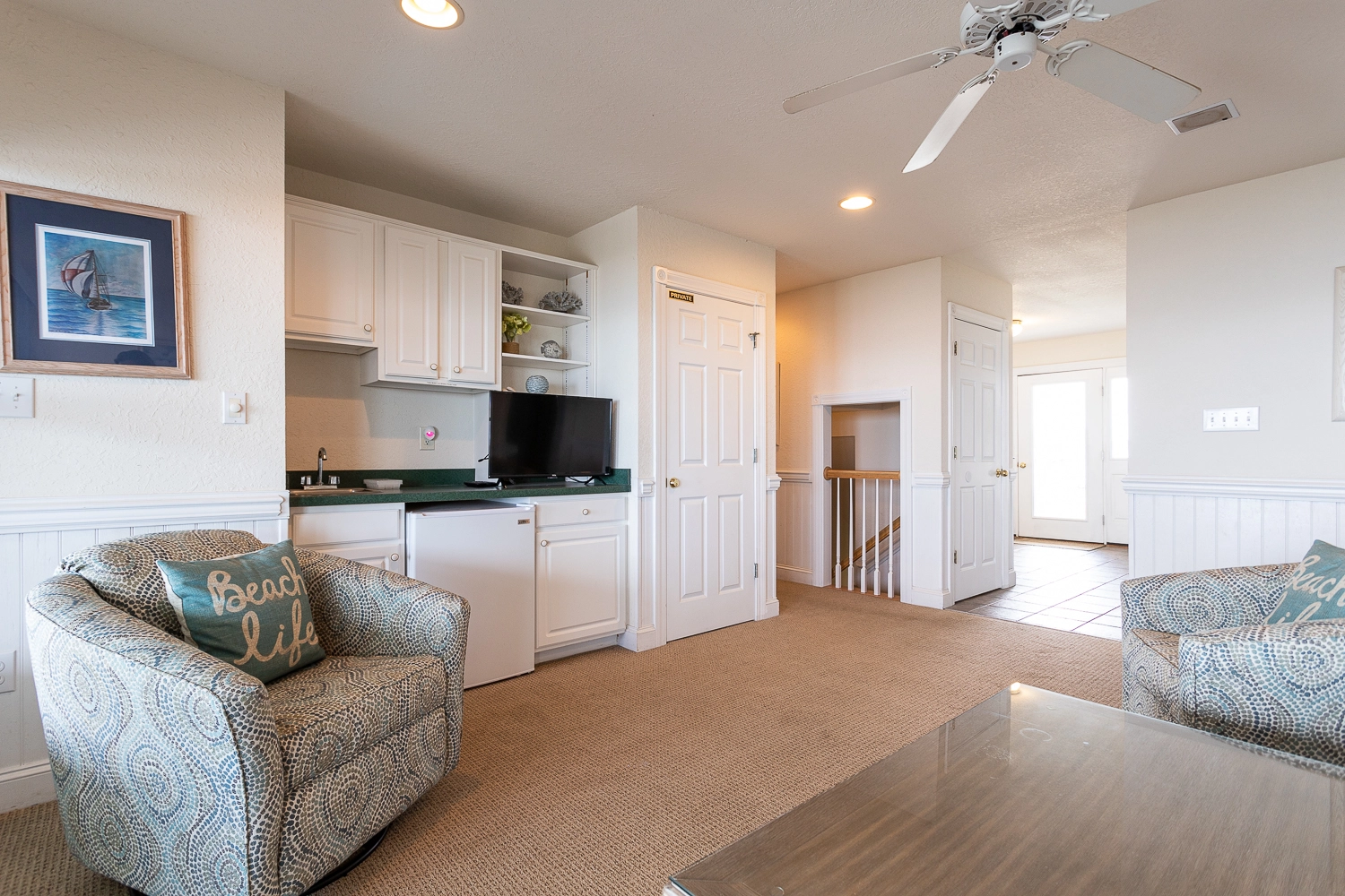 Oceanside, Queen, Standing shower, Deck access