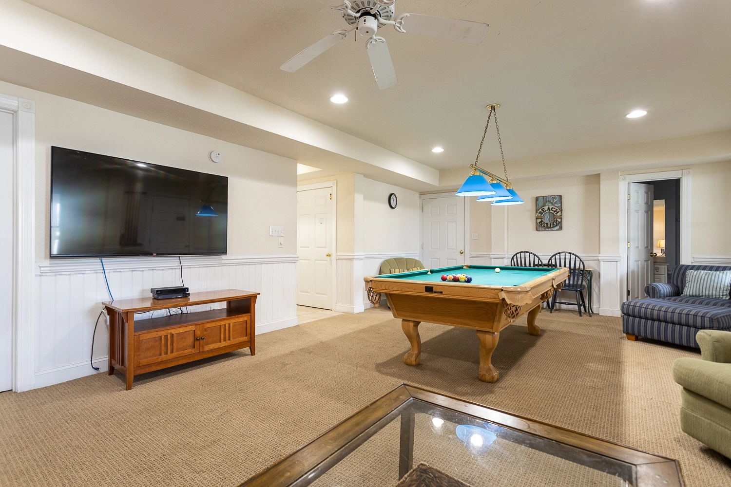Rec room (QSS) with pool table; laundry.
