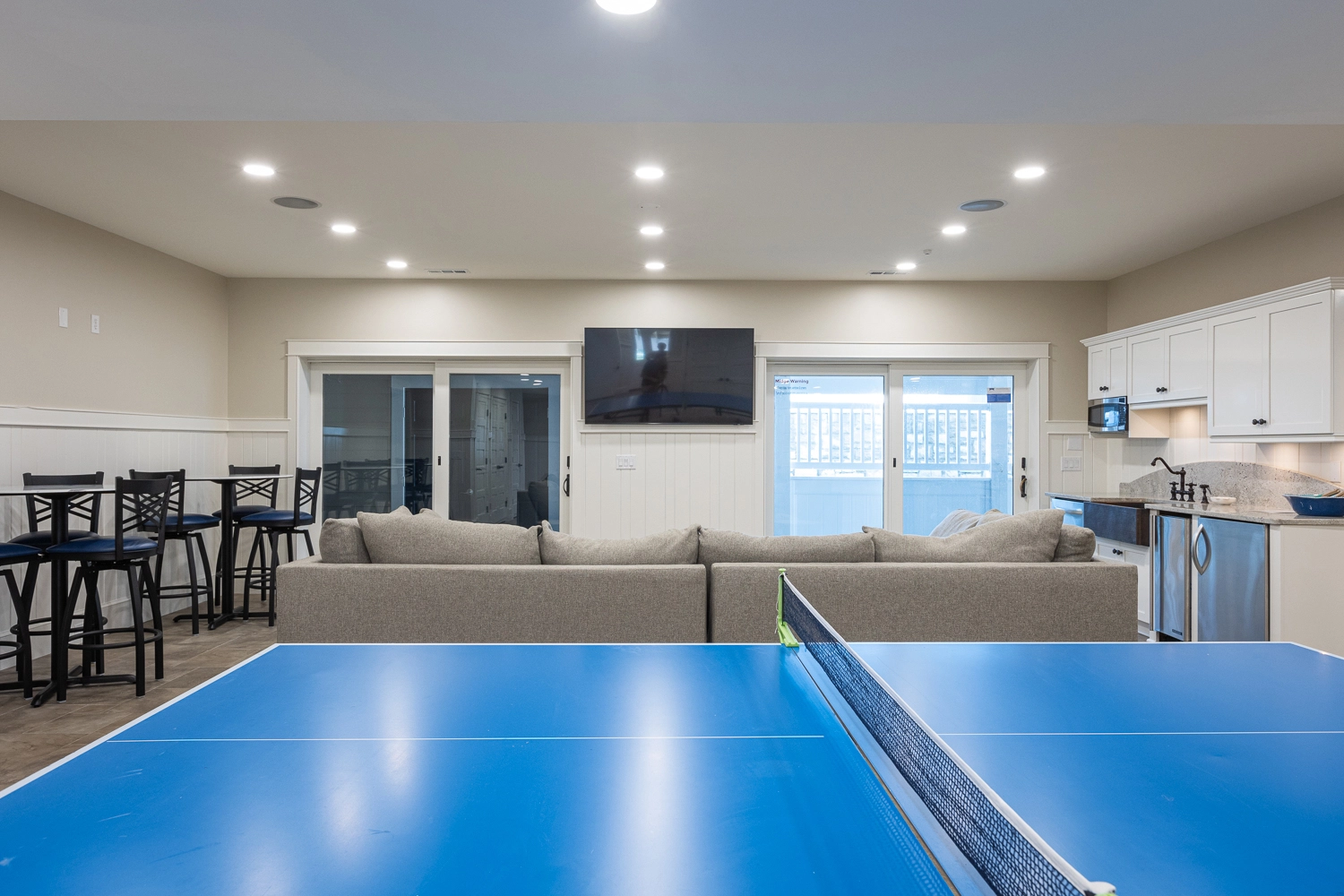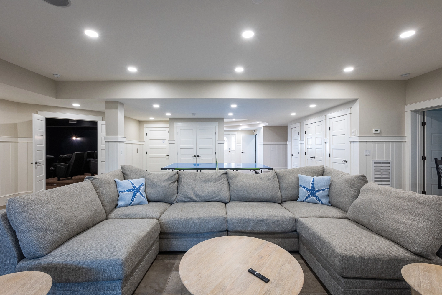 Rec room with ping pong, foosball and kitchenette; theater room.