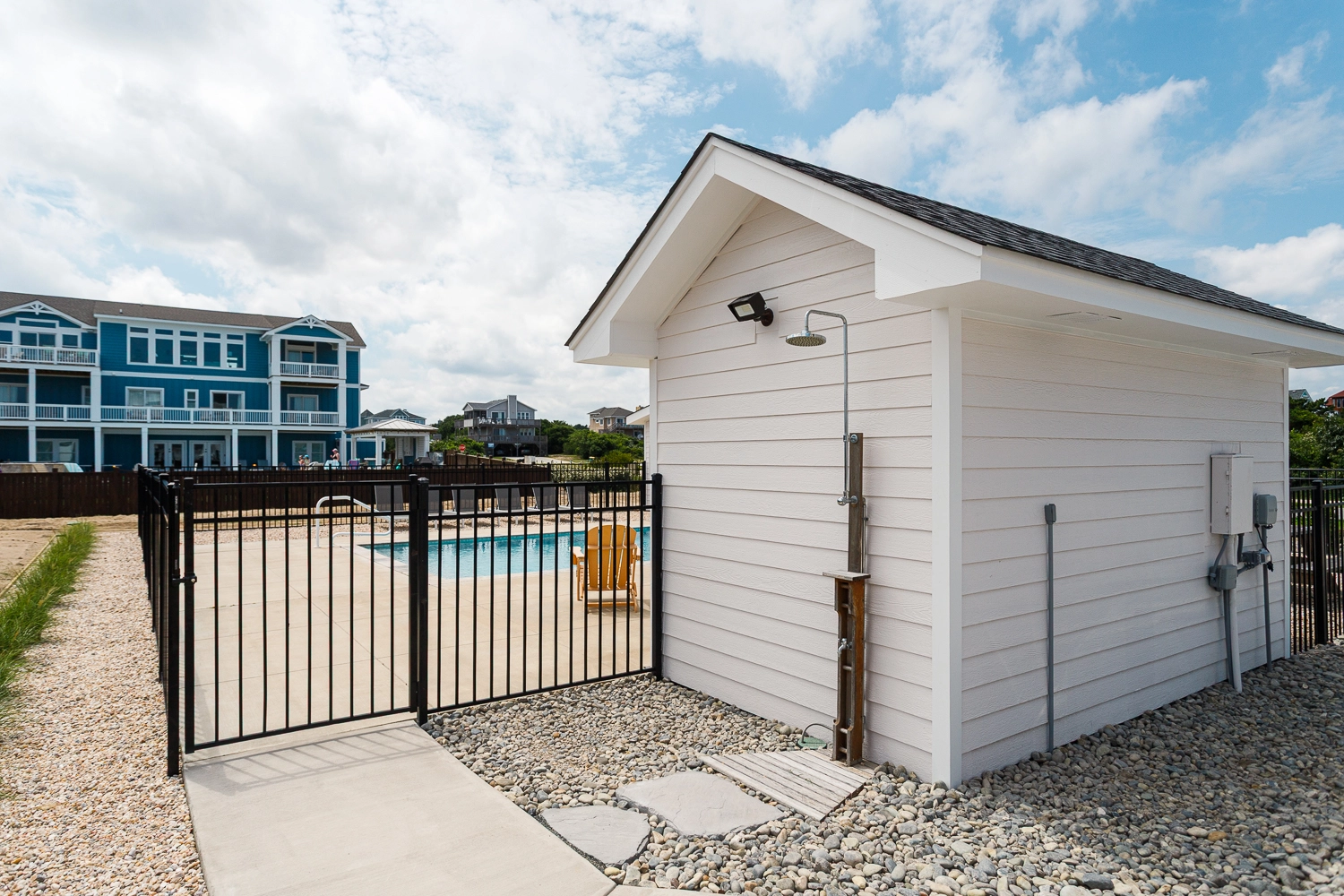 Elevator, private pool, hot tub, gas grill, multiple outdoor showers.