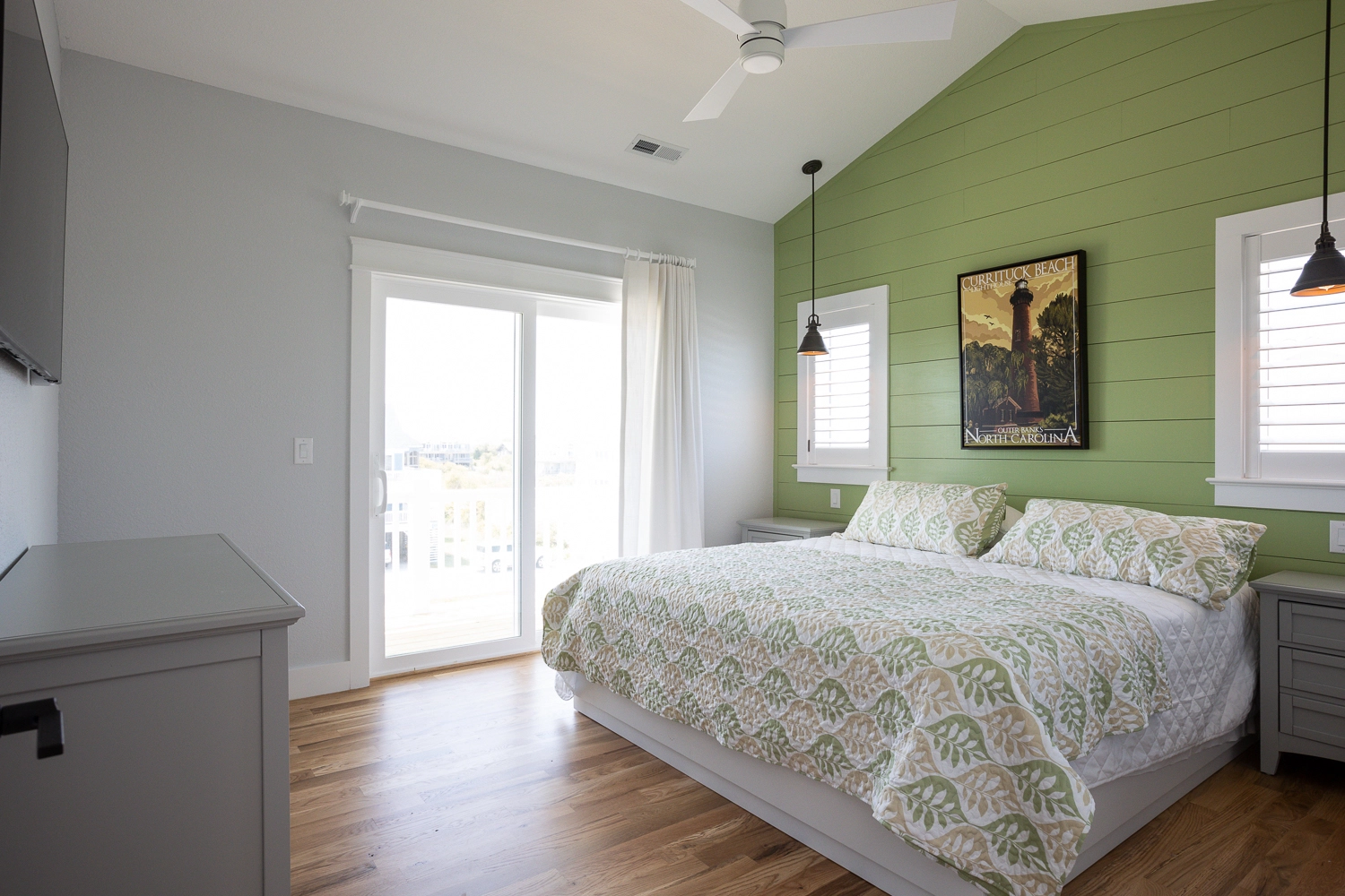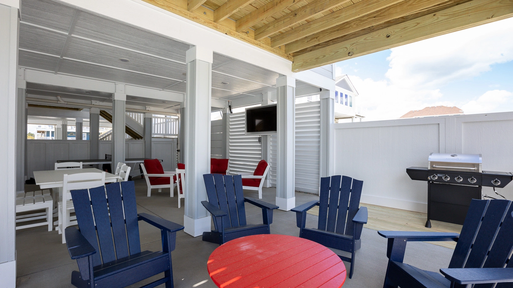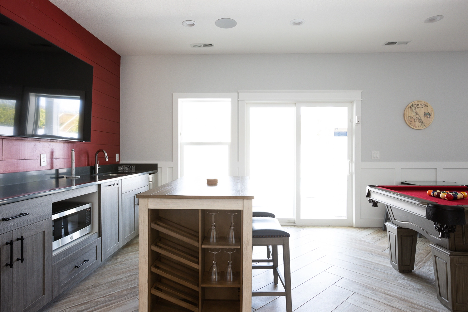 "The house was great! Sometimes you get a house and it’s missing utensils, pots and pants etc., that was not the case with this home. Really loved the fully loaded kitchen. The downstairs bar icemaker was a nice touch. We brought big YETI coolers but didn’t even use them due to the large refrigerators on all floors. The larger than normal parking area was also a HUGE plus. Folks were able to get in and out without everyone needing to move cars around. The private beach cabana was a great spot to cool off and still get the feeling of being on the beach. The homeowners were also kind enough to deliver freshly baked pies. There seemed to be an outside pool speaker system but it was unclear how to hook up to them. I think another TV near the grill/pool bar area would be a nice future upgrade. I have never had a bad stay in the OBX but this house was truly worth it. Thanks Twiddy & Co for the ease and hospitality!"