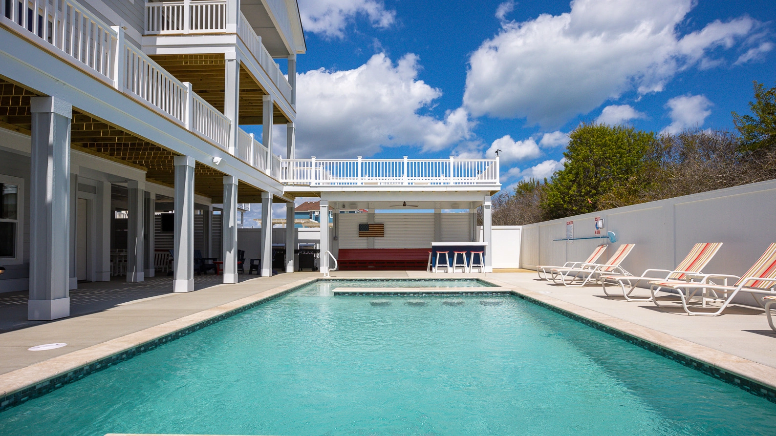 "The American Resort was amazing. The home had everything you could want. It was extremely clean and well organized. The outdoor facilities including the pool, bar and seating areas were amazing. We had 4 generations of family together for the week. There was room for everyone to gather together as well as great spaces for everyone when they needed some alone time. We were also greeted by a Twiddy associate who gave us a tour of the house to show us all the bells and whistles including the home theater and the property wide sound system. It is a great property on a beautiful stretch of beach."