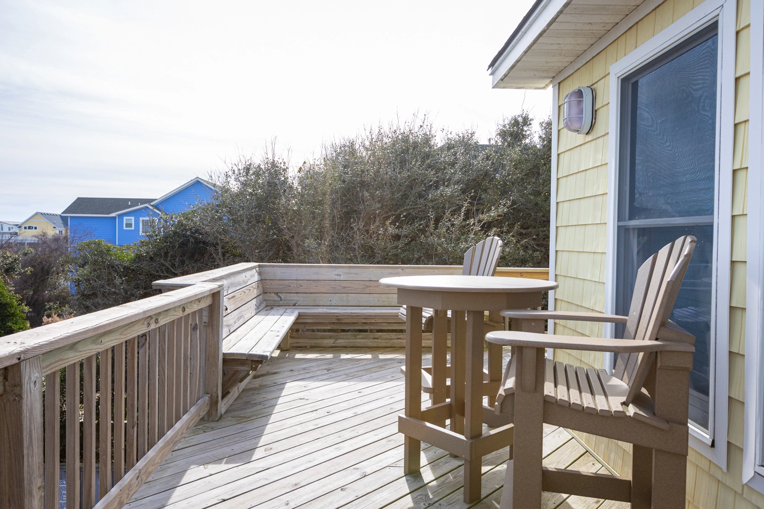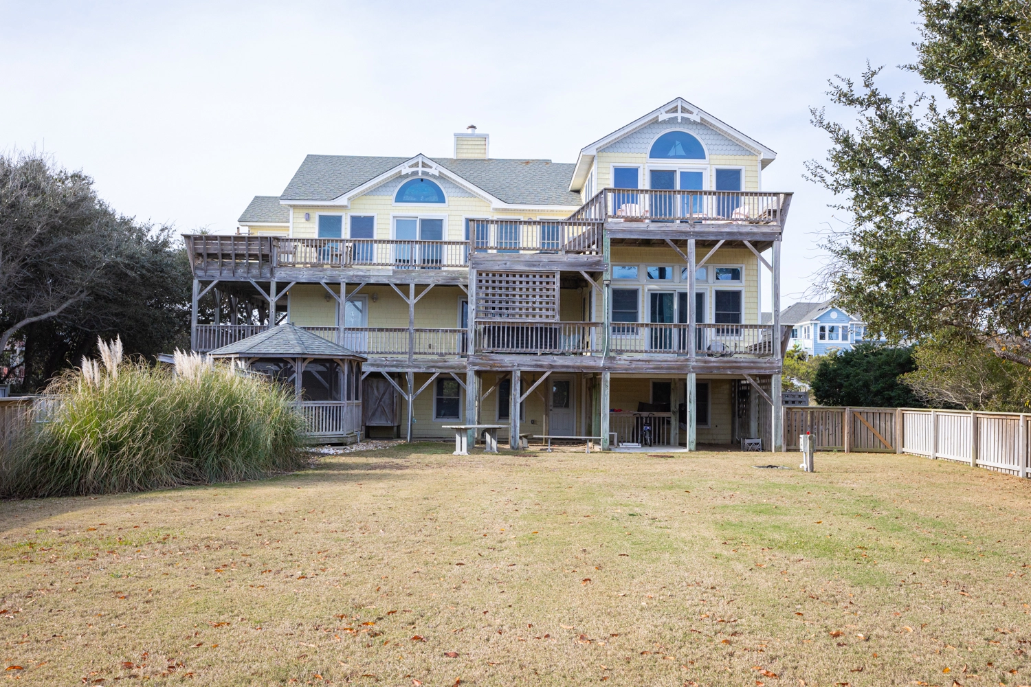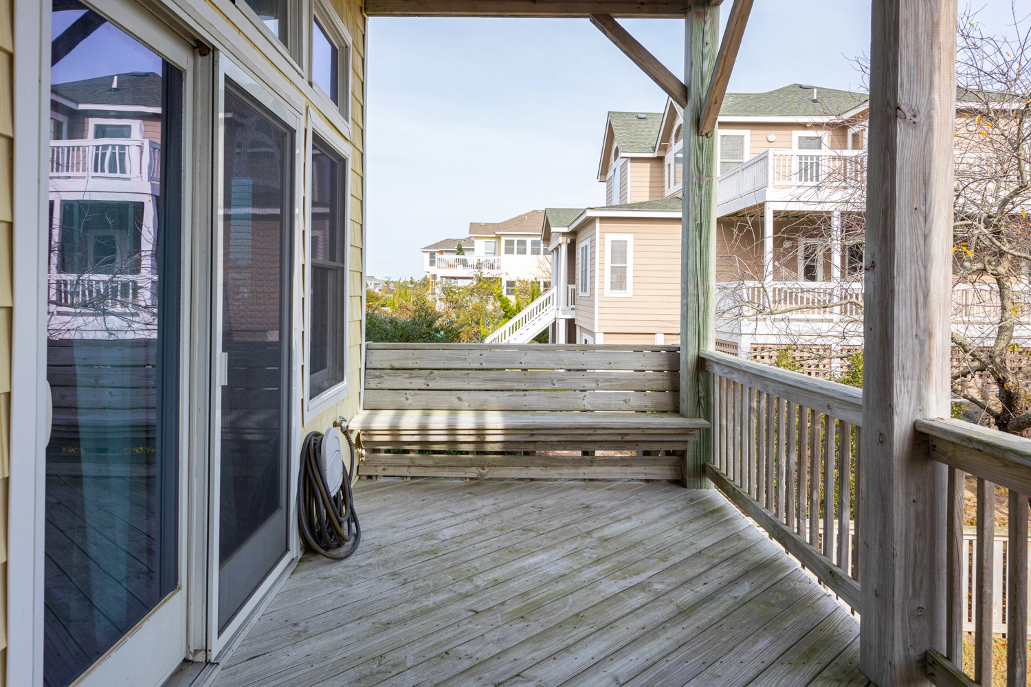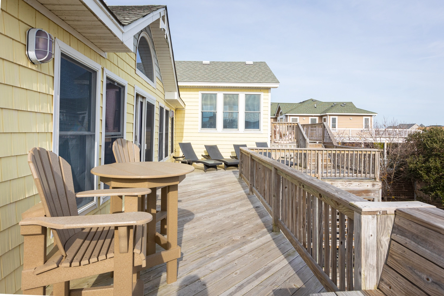 "Close to a beach access that is not strictly stairs… much appreciated for wagons full of kids toys. Kitchen has good assortment of dishes, pots, pans, utensils, coffee makers, etc. Large backyard. Quantity of rooms/masters was great for vacation with multiple families. The outdoor dumbwaiter was great for getting heavy coolers up and down from kitchen! Loft area was nice for puzzles, games, etc. Upper deck provided view of fireworks on 4th of July for those who had young kids in bed and had to stay at the house."
