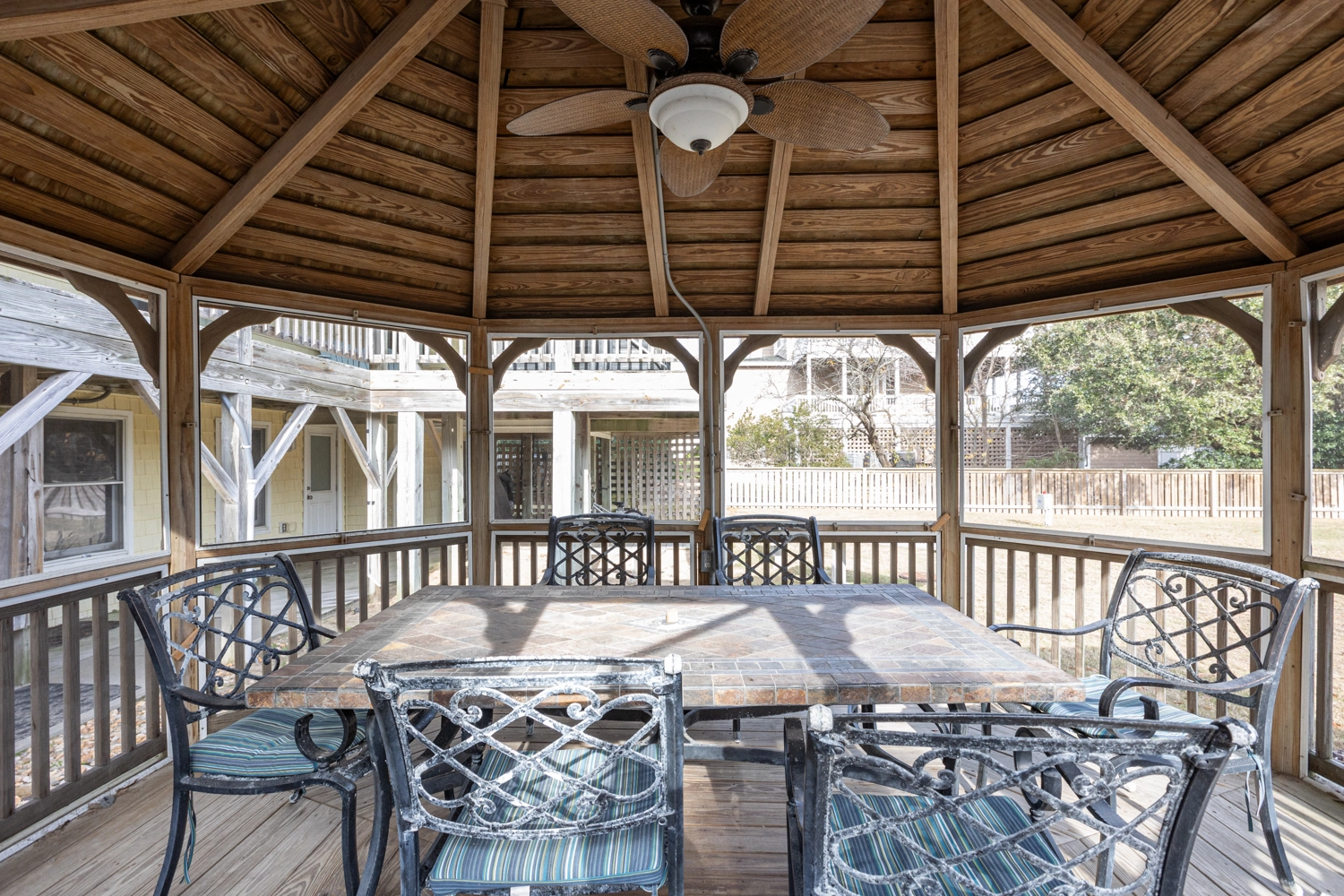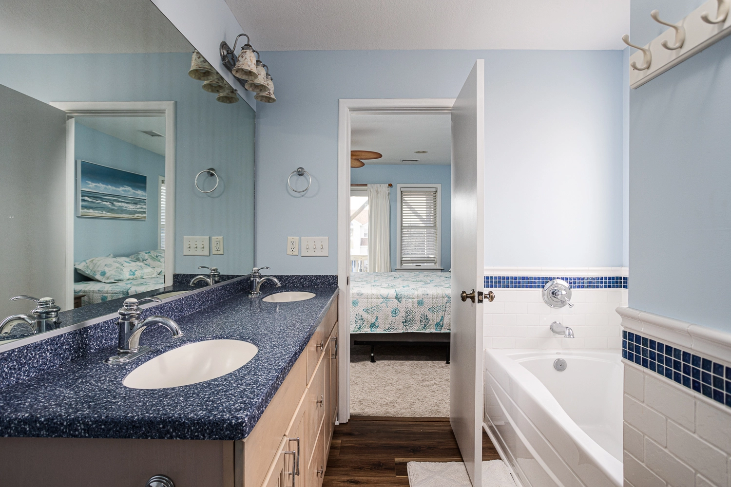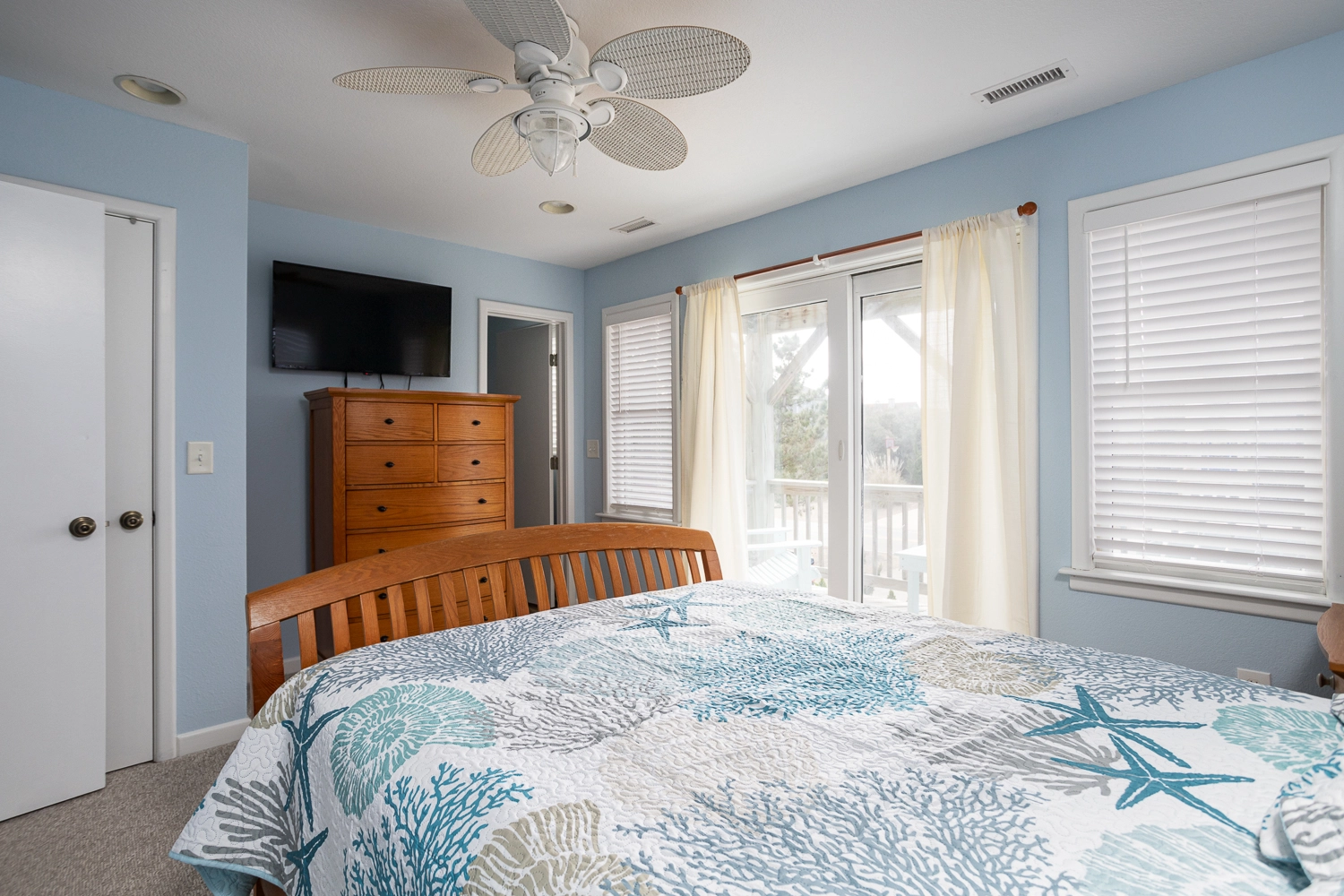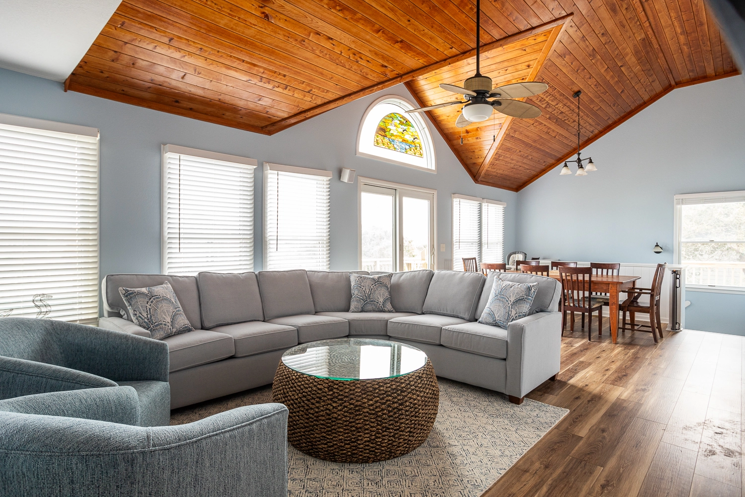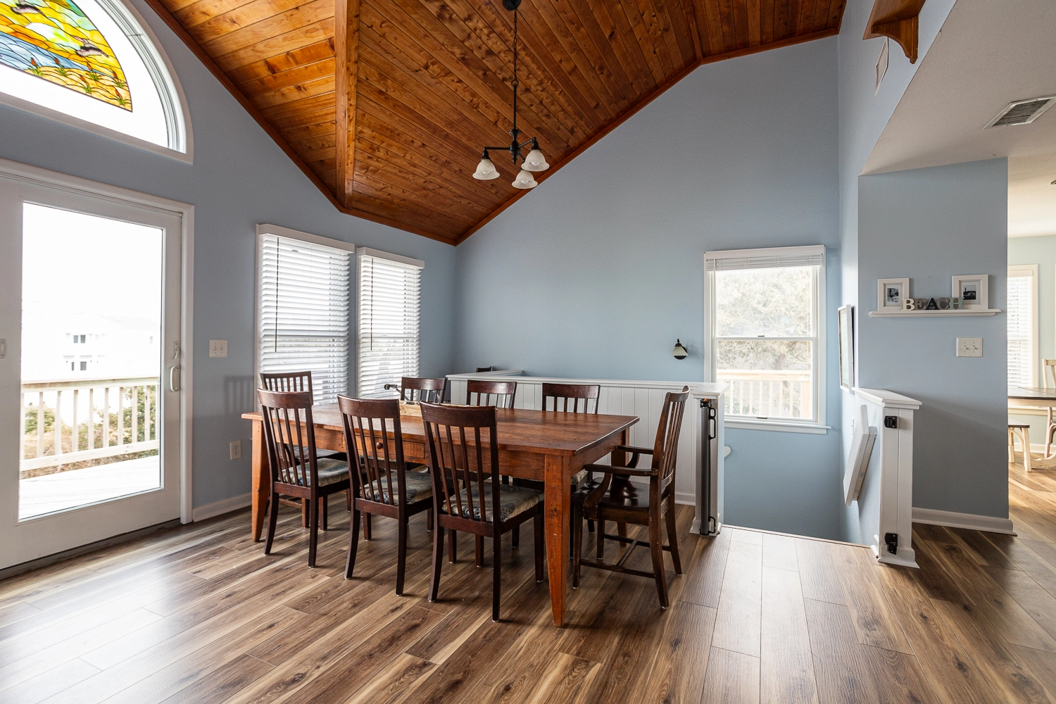 "Close to a beach access that is not strictly stairs… much appreciated for wagons full of kids toys. Kitchen has good assortment of dishes, pots, pans, utensils, coffee makers, etc. Large backyard. Quantity of rooms/masters was great for vacation with multiple families. The outdoor dumbwaiter was great for getting heavy coolers up and down from kitchen! Loft area was nice for puzzles, games, etc. Upper deck provided view of fireworks on 4th of July for those who had young kids in bed and had to stay at the house."