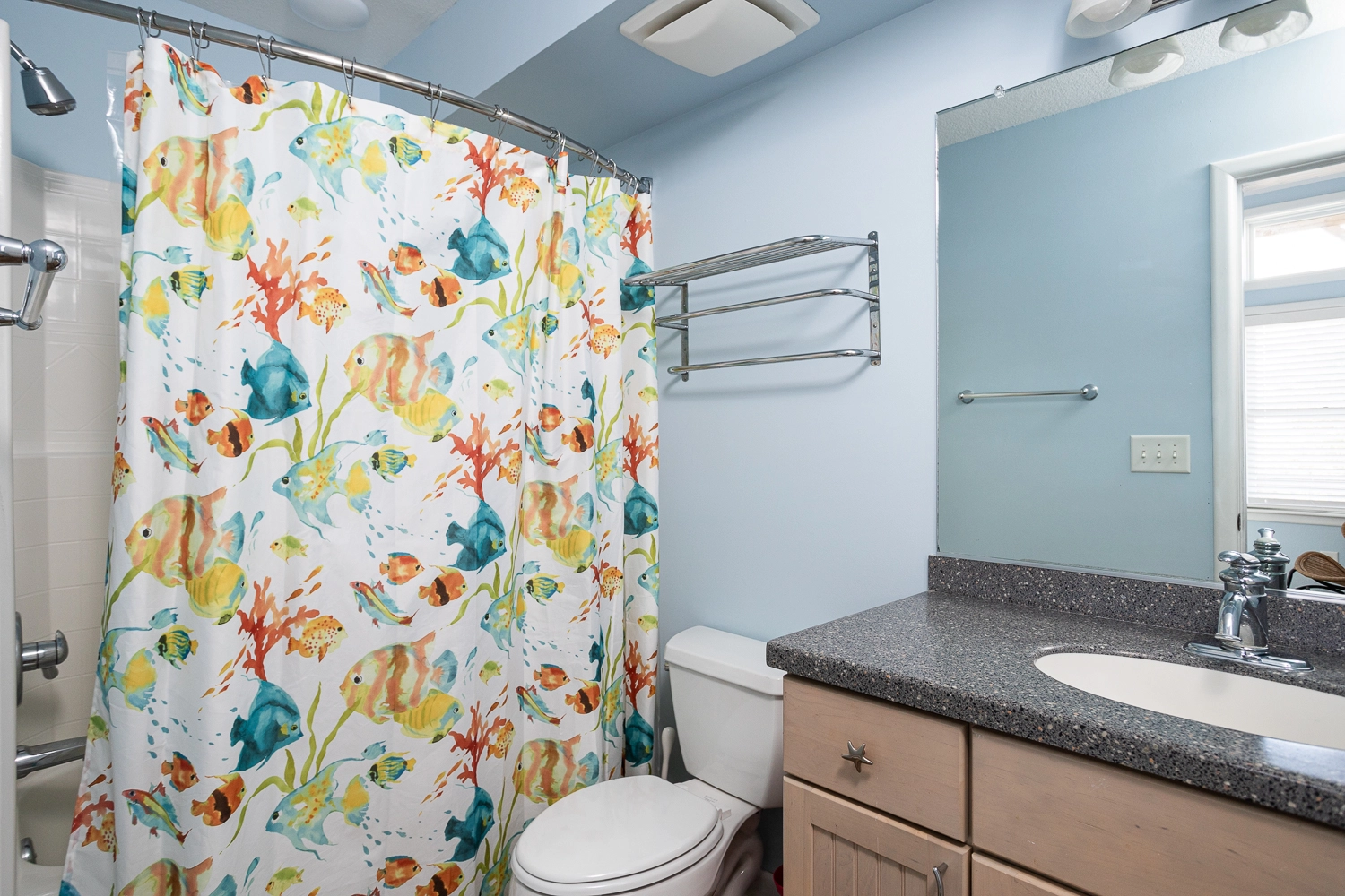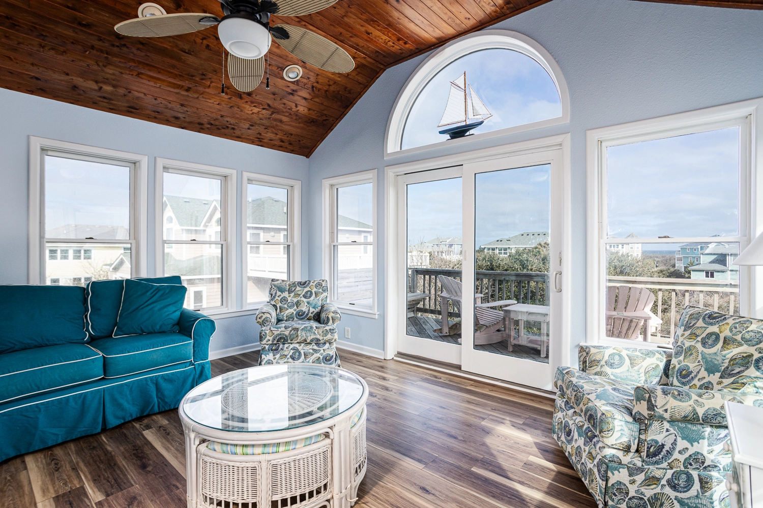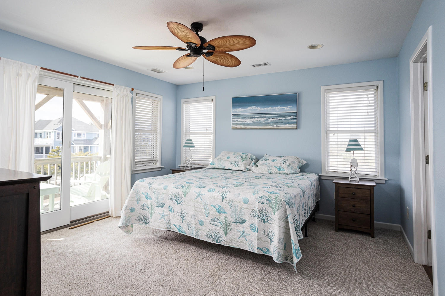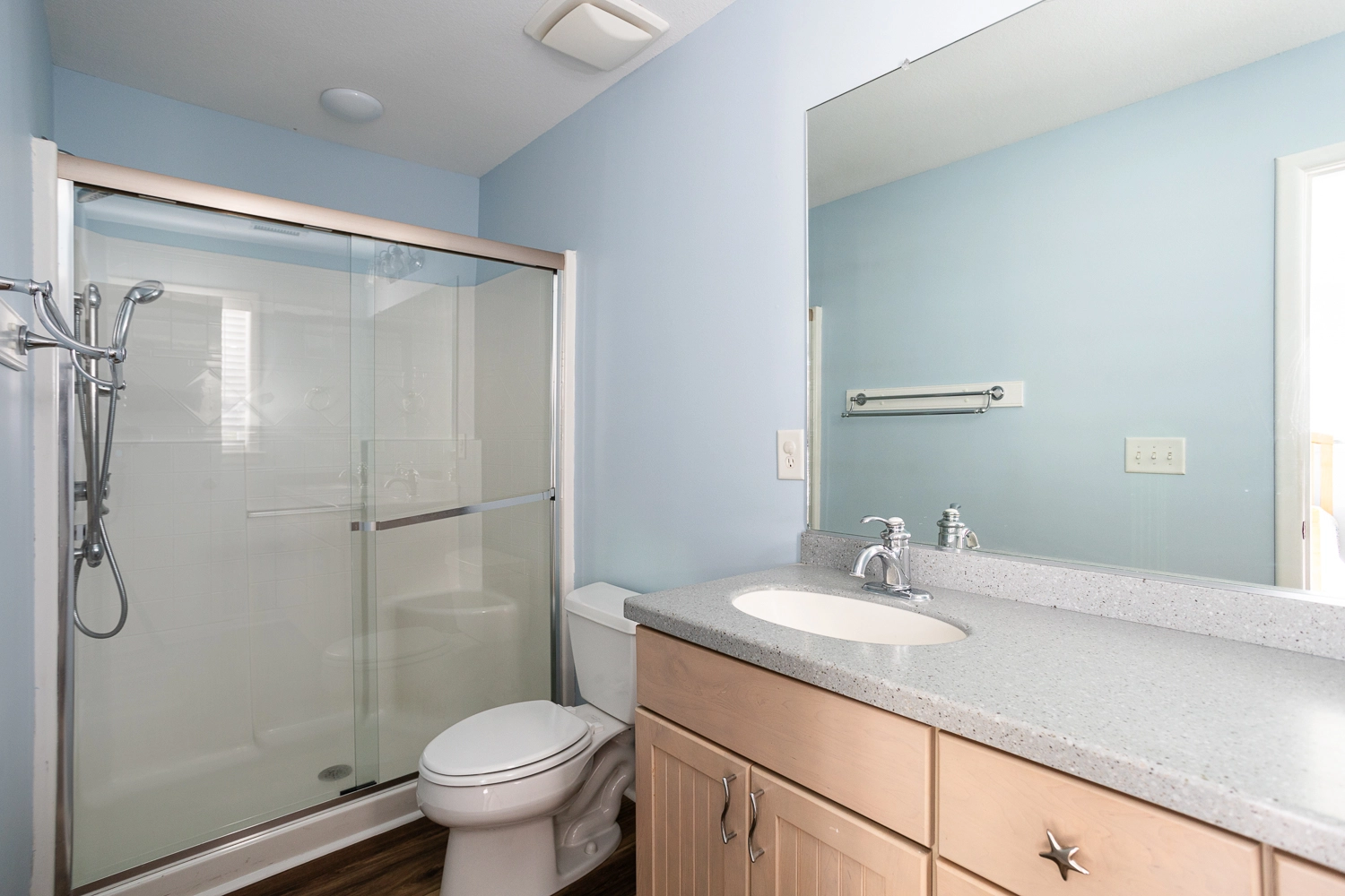 "Close to a beach access that is not strictly stairs… much appreciated for wagons full of kids toys. Kitchen has good assortment of dishes, pots, pans, utensils, coffee makers, etc. Large backyard. Quantity of rooms/masters was great for vacation with multiple families. The outdoor dumbwaiter was great for getting heavy coolers up and down from kitchen! Loft area was nice for puzzles, games, etc. Upper deck provided view of fireworks on 4th of July for those who had young kids in bed and had to stay at the house."