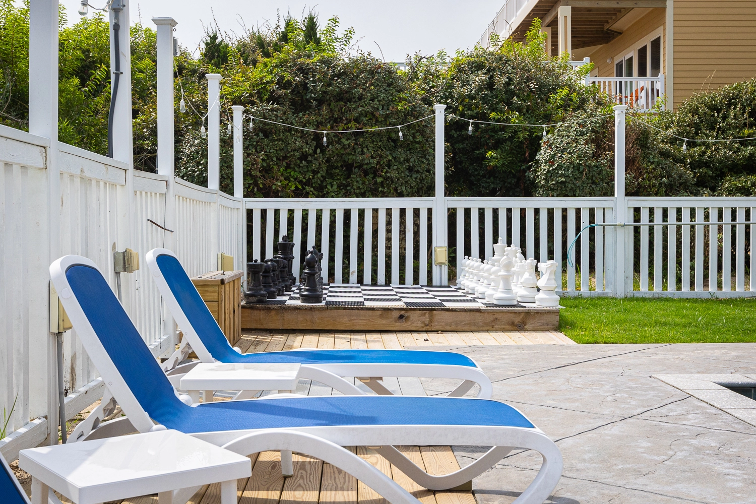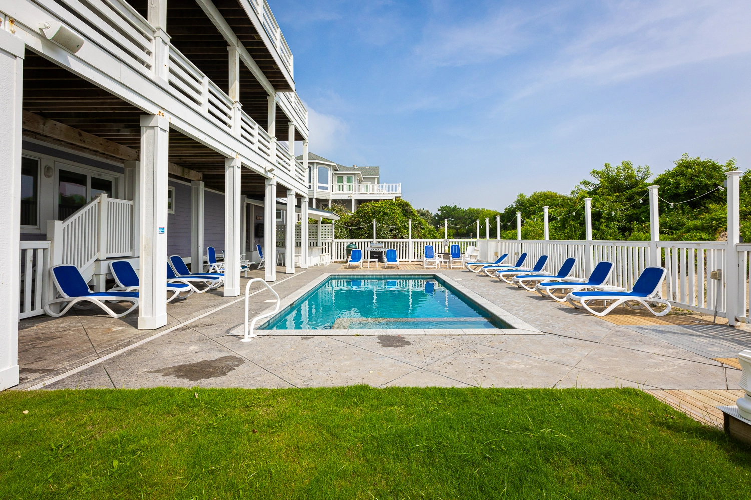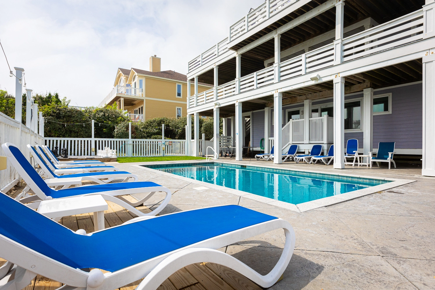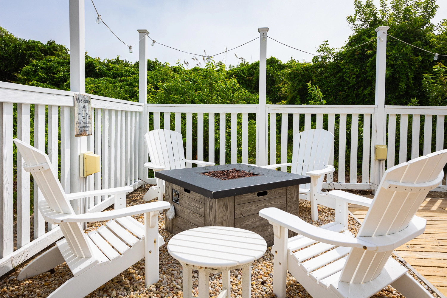 "Outside fire pit, pool area, dune top hot tub, proximity to the beach and local shops."